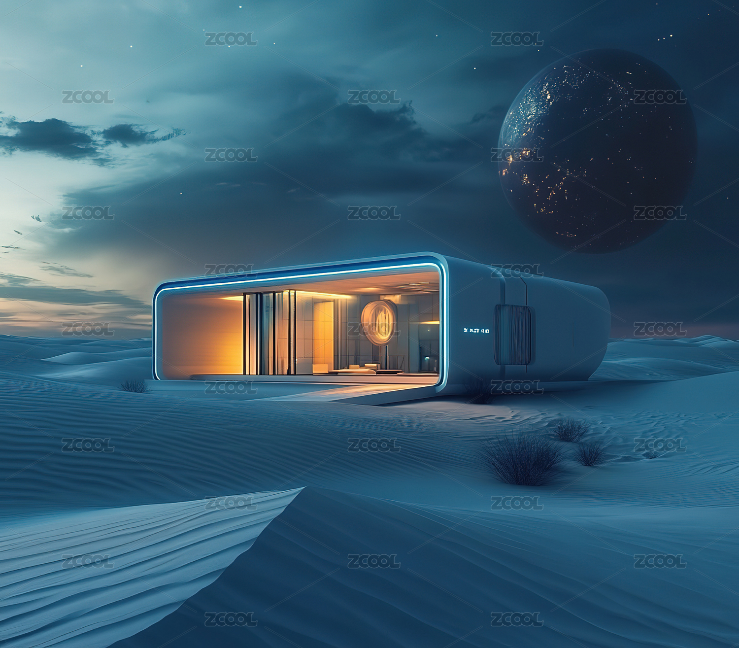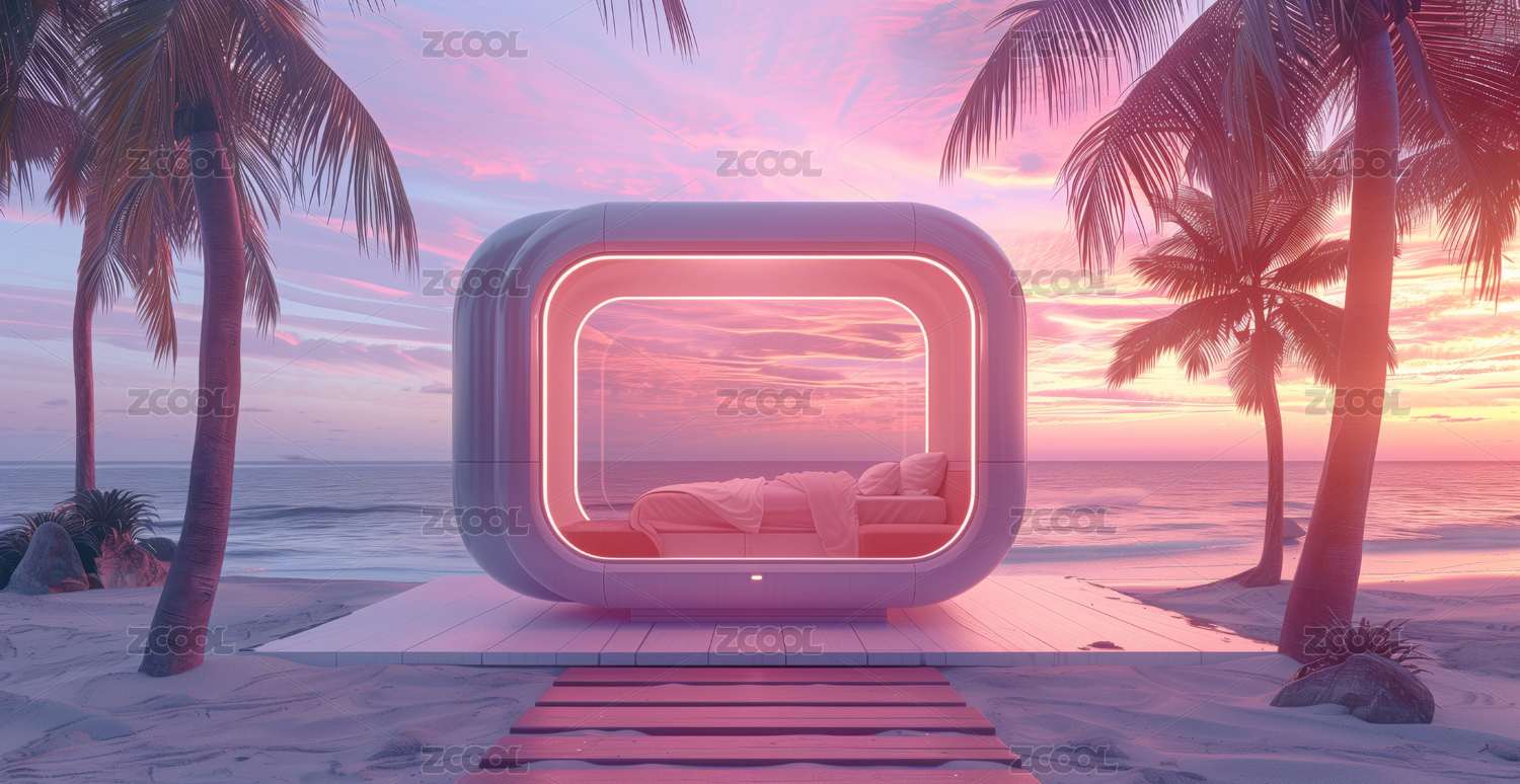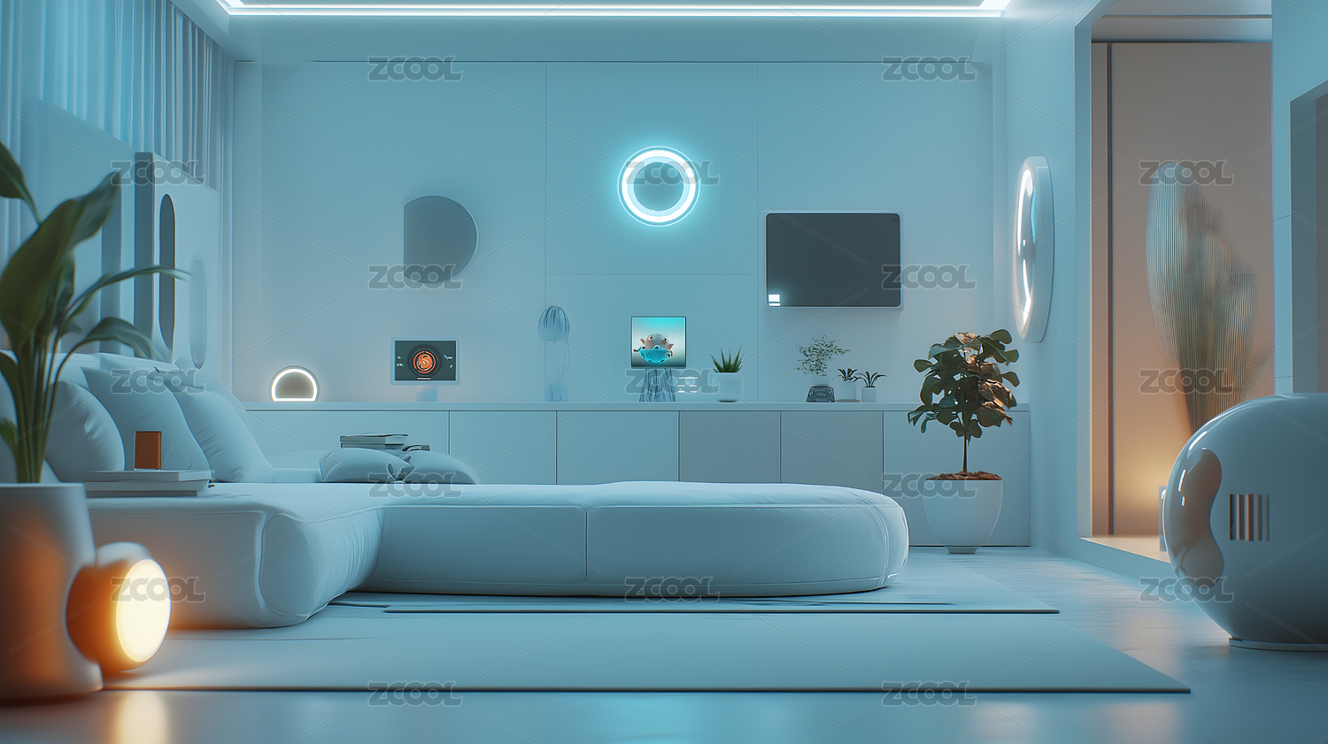 科技感,未来,科幻,霓虹,家居,厨房,卧室,公寓,三维,3D
