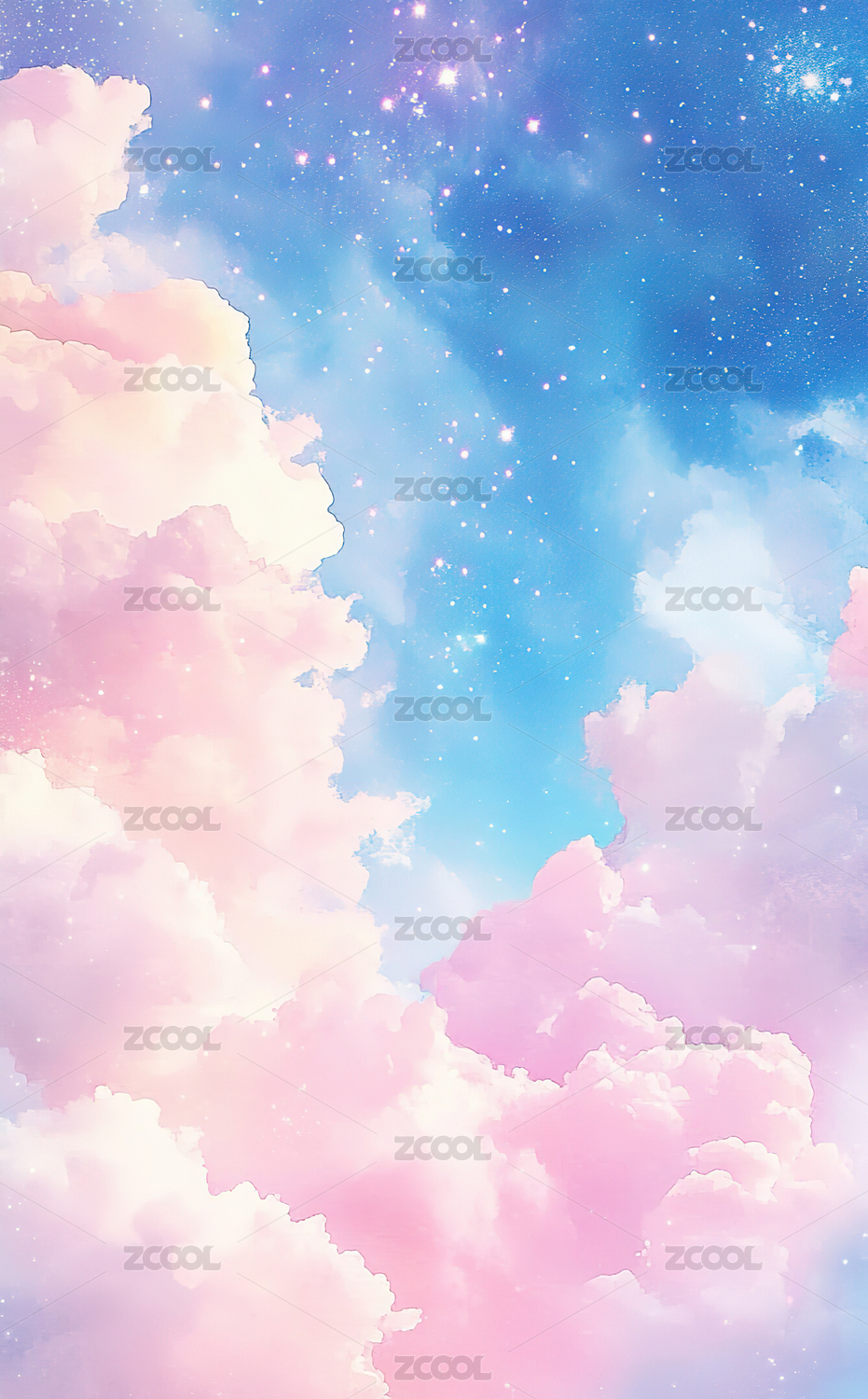 梦幻粉彩云朵星空