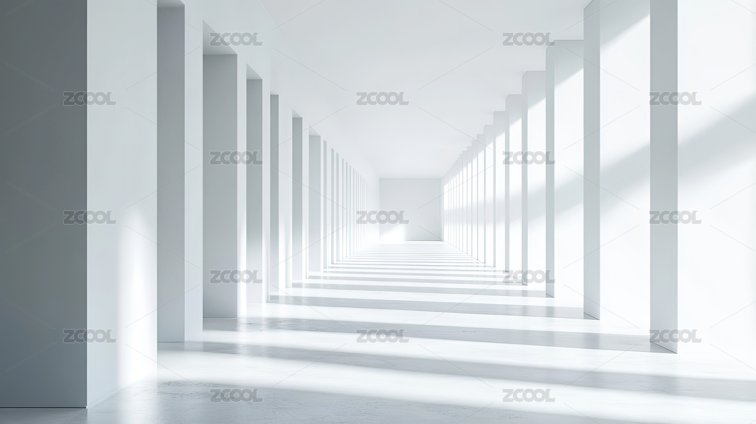 干净无人明亮白色人造空间通道房间概念背景