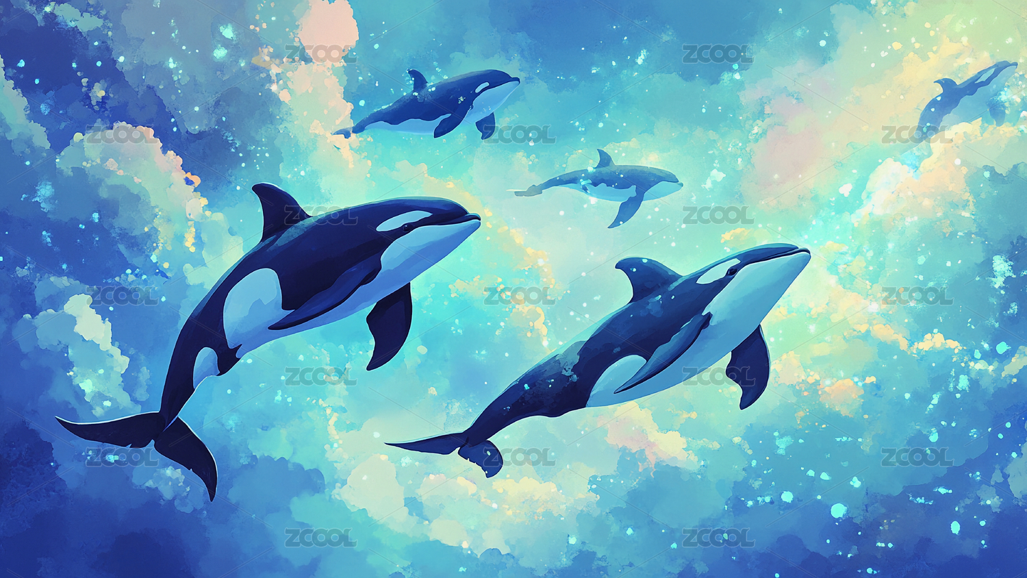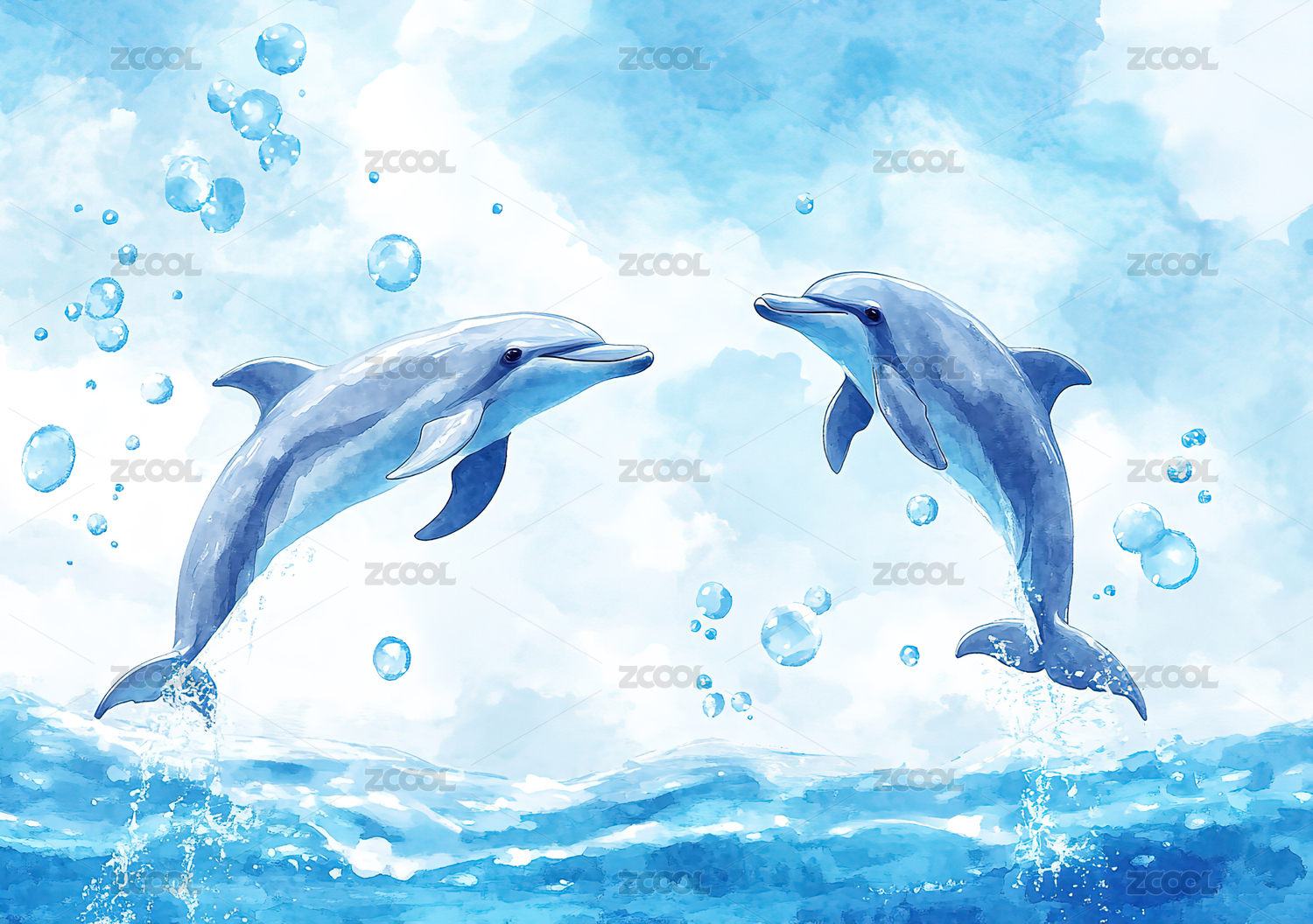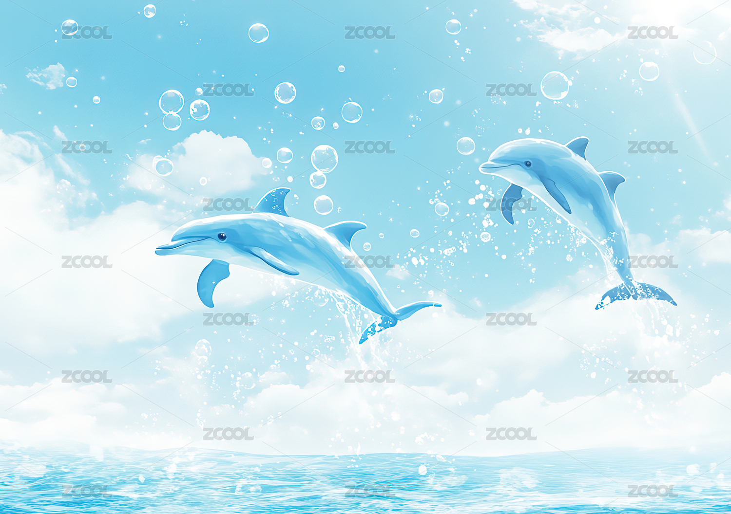 动物,海豚,鱼,鲸鱼类,云,海洋,泡泡,水花,闪亮,发光