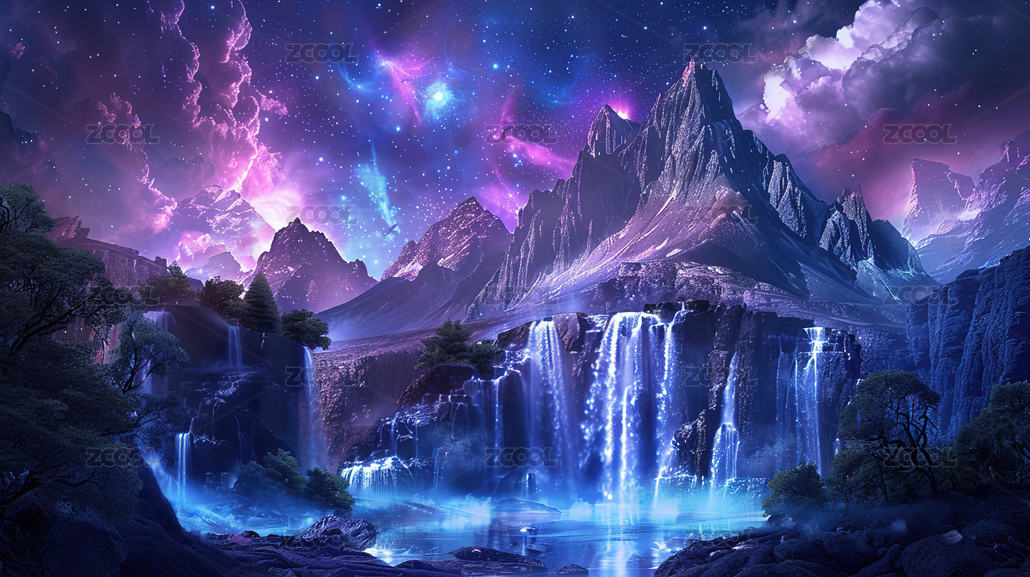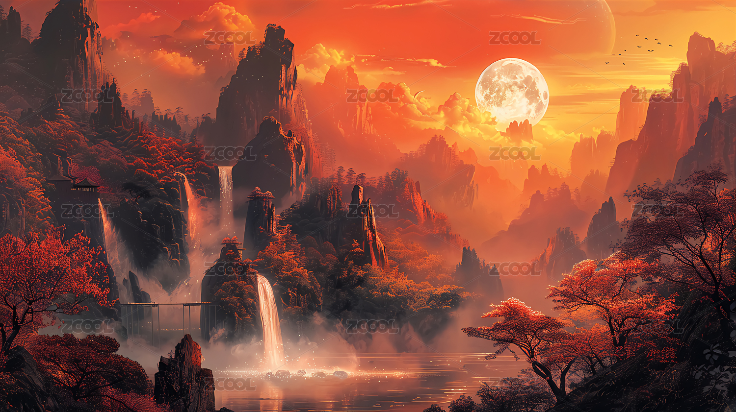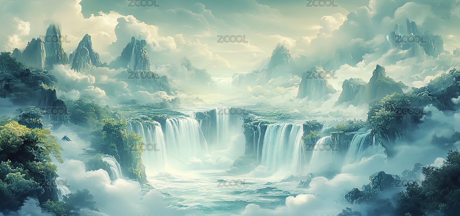 彩画中国画山水画国风国潮梦幻唯美AI数字