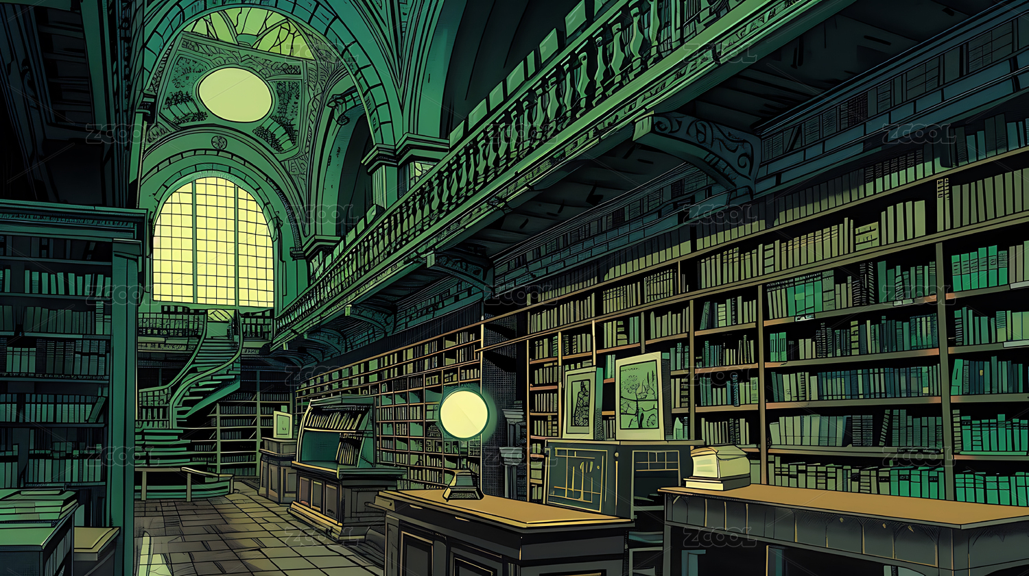 中世纪魔法场景图书馆