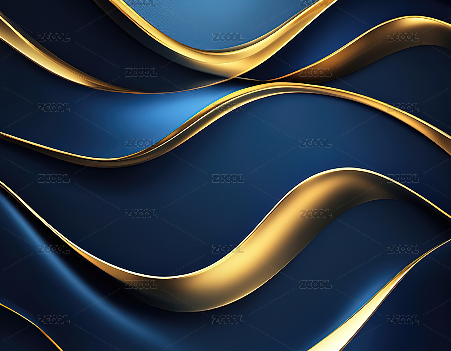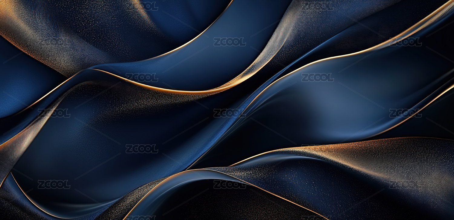 蓝色与金色波浪抽象背景