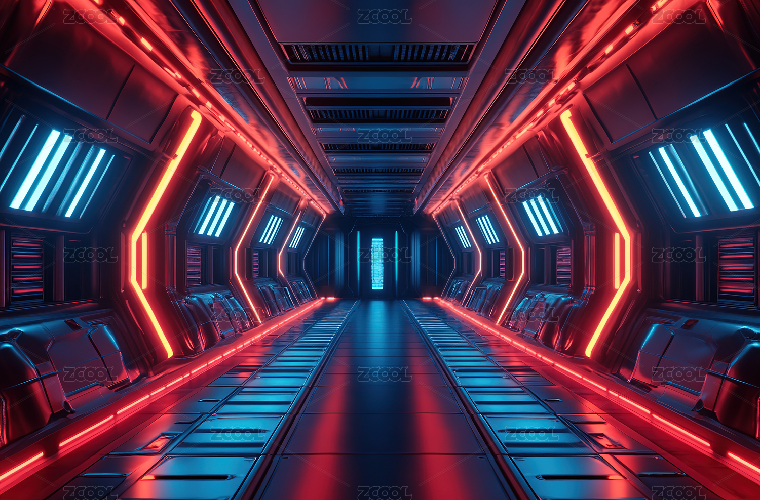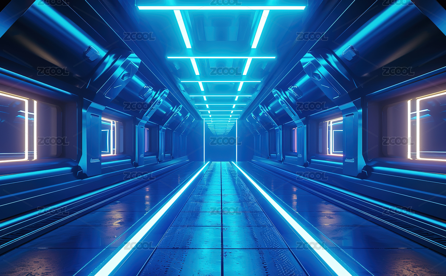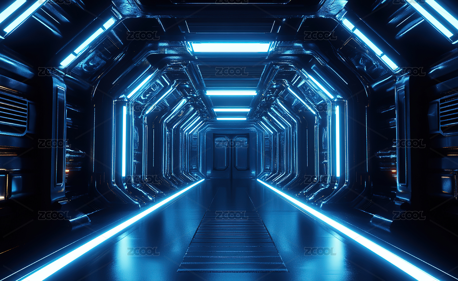 蓝色科幻走廊未来科技感通道