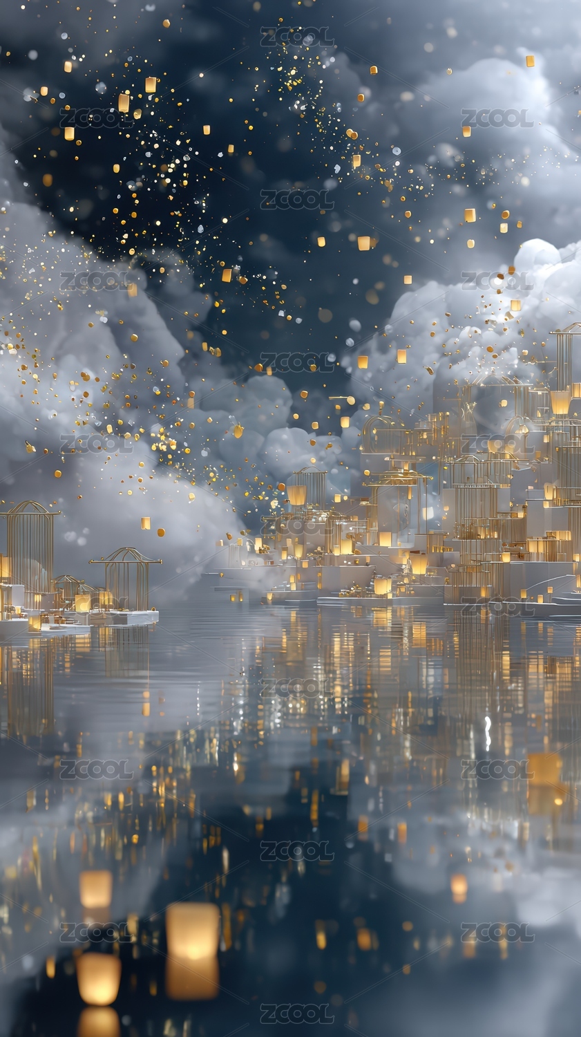 梦幻唯美浪漫夜景野外户外星空下放飞孔明灯场景