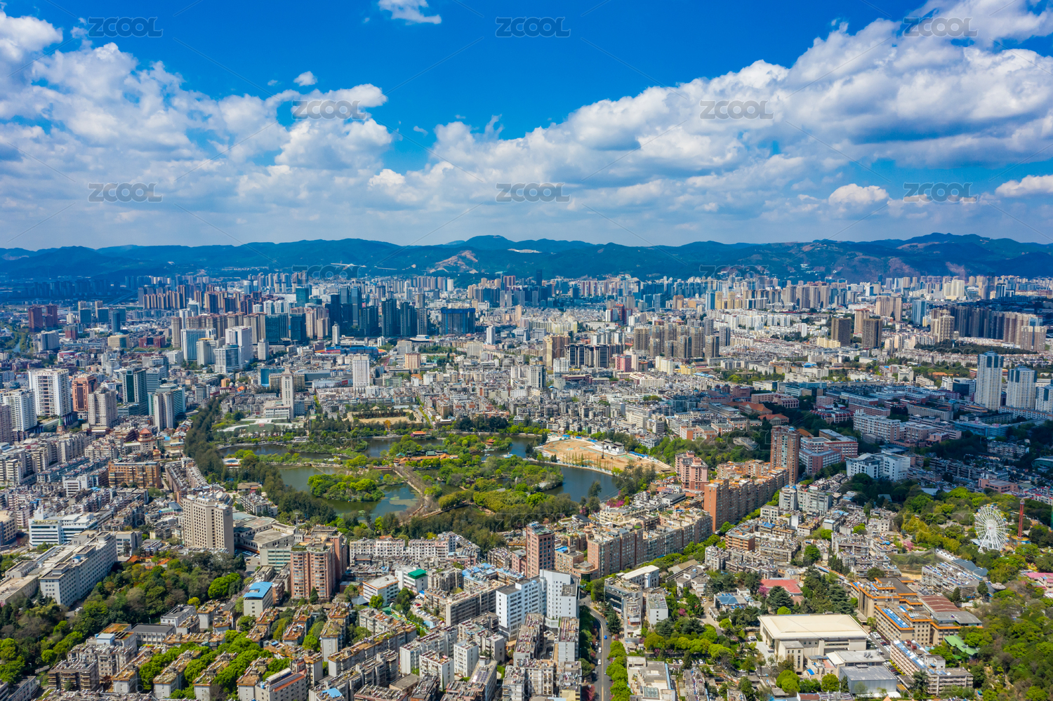 航拍云南昆明翠湖公园城市湖泊自然湿地风光