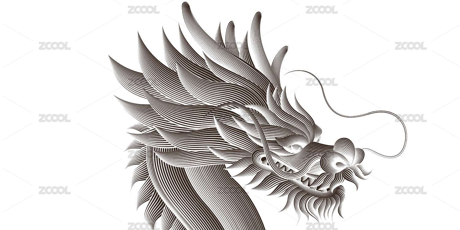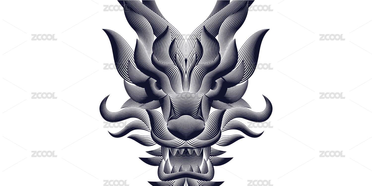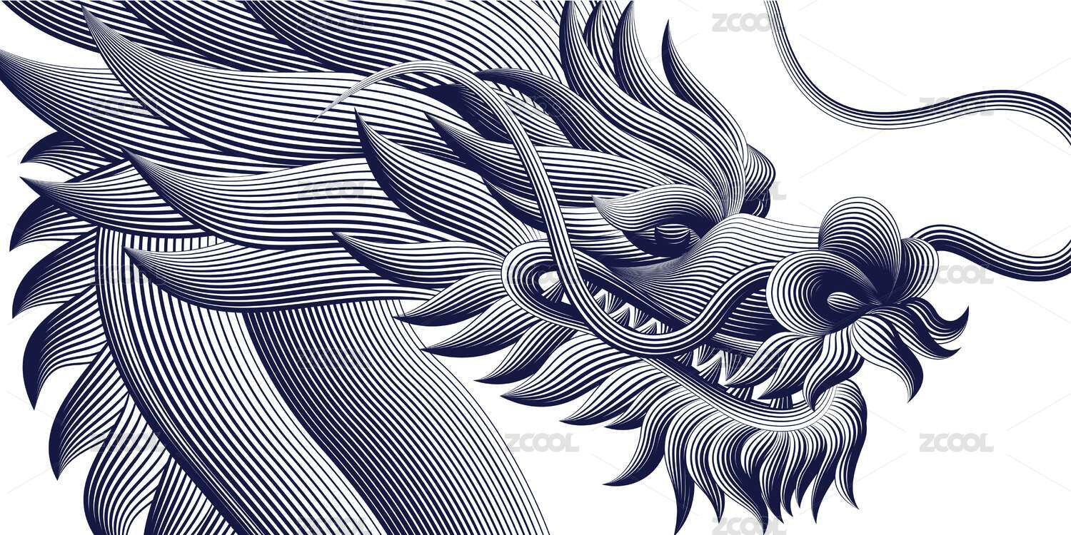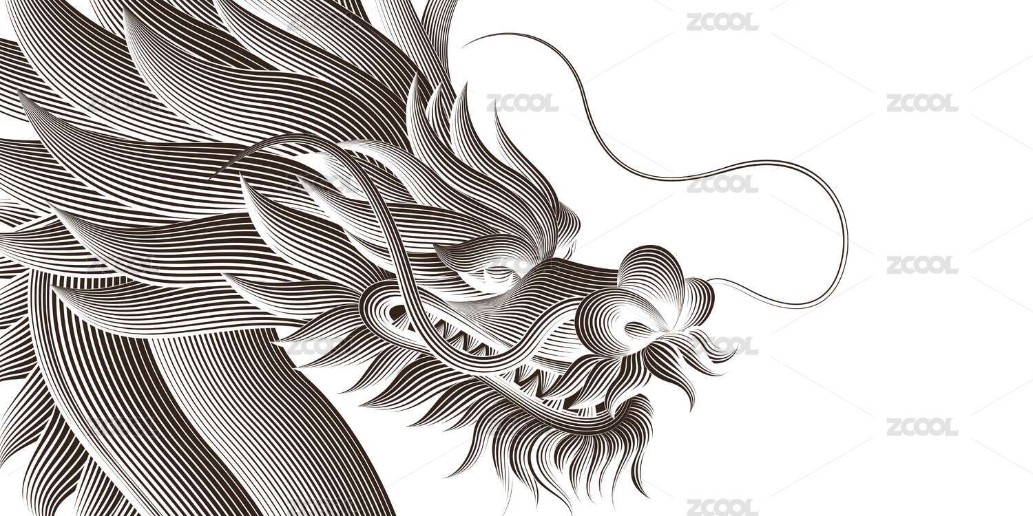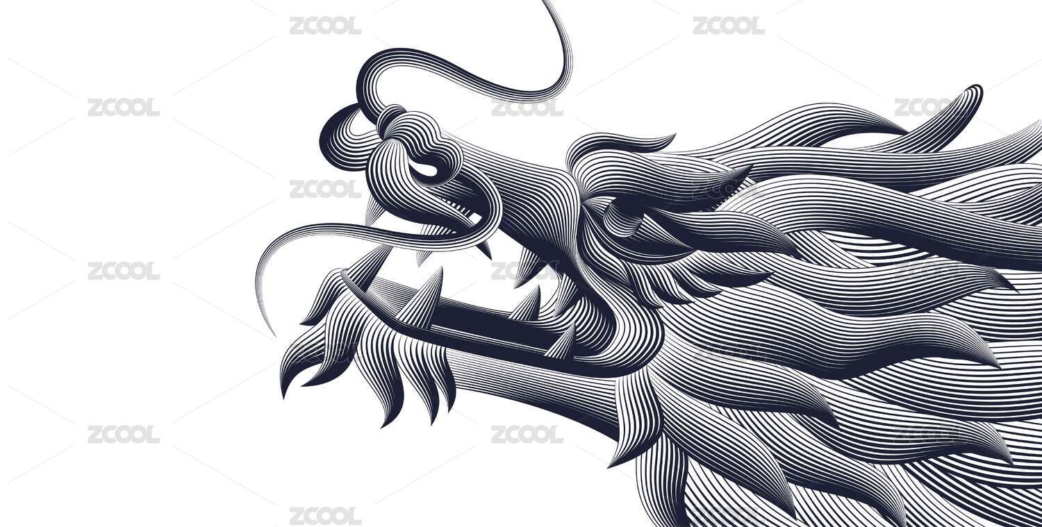 插画,传统,春节,节日,龙年,龙抬头,龙头,中国文化,中式,中国风