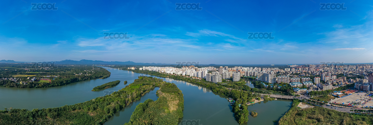 海南,琼海,万泉河,河流,热带,湿地,城市,航拍,琼海万泉河景区,河心岛