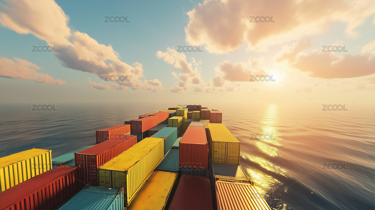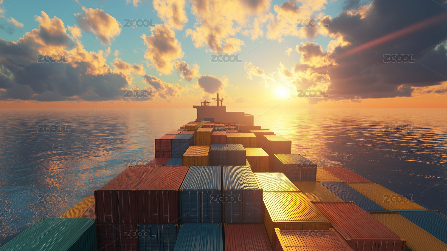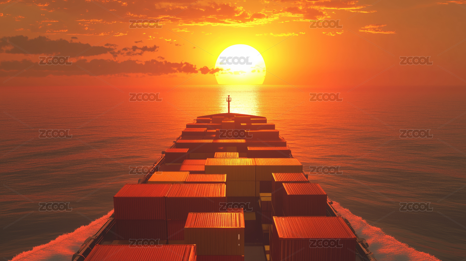 集装箱,船,海洋,贸易,AI,物流,日落,海面,倒影,全球