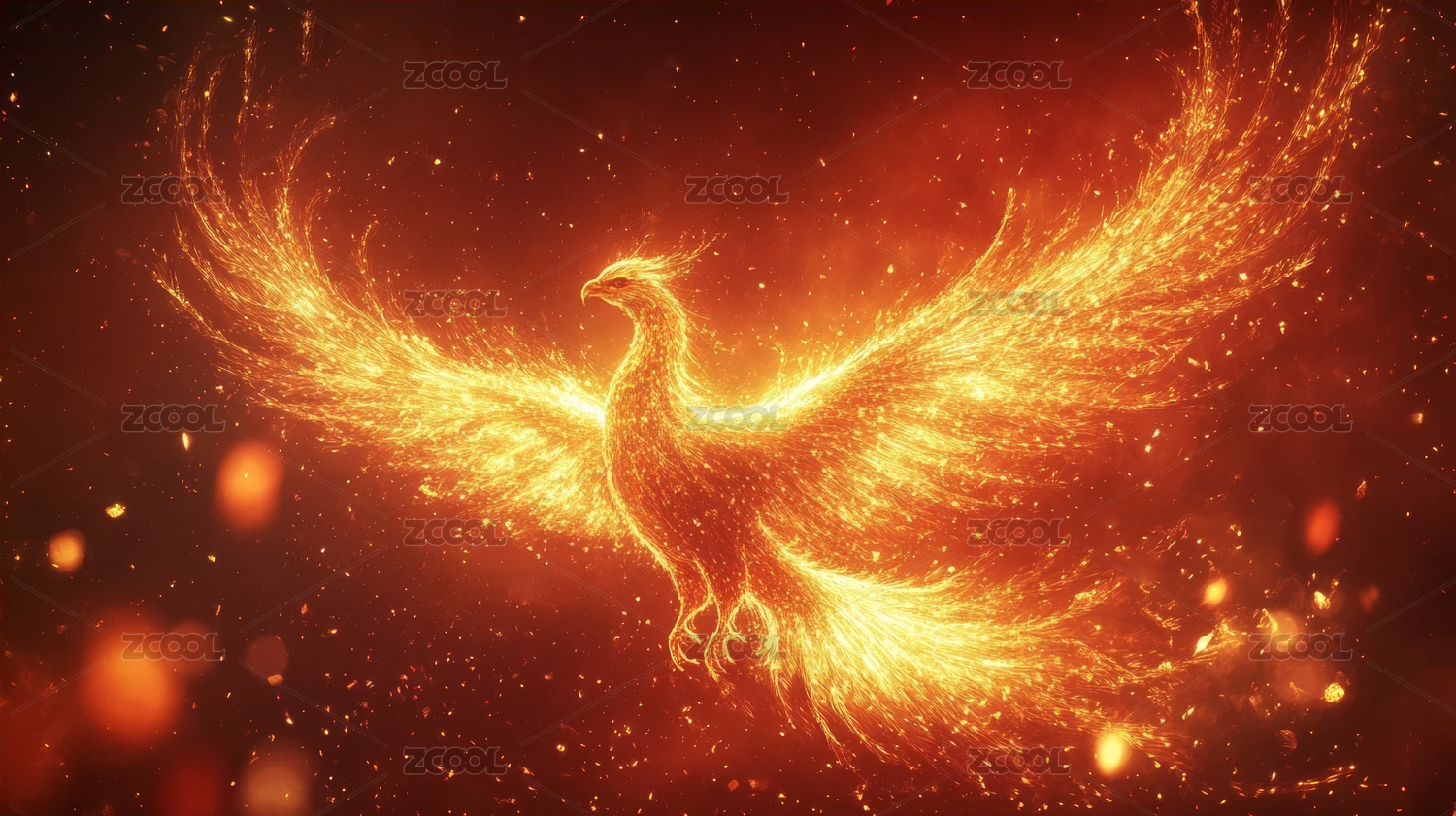 DXCZ202404,国风,中国红,神兽,凤凰,喜庆,插画