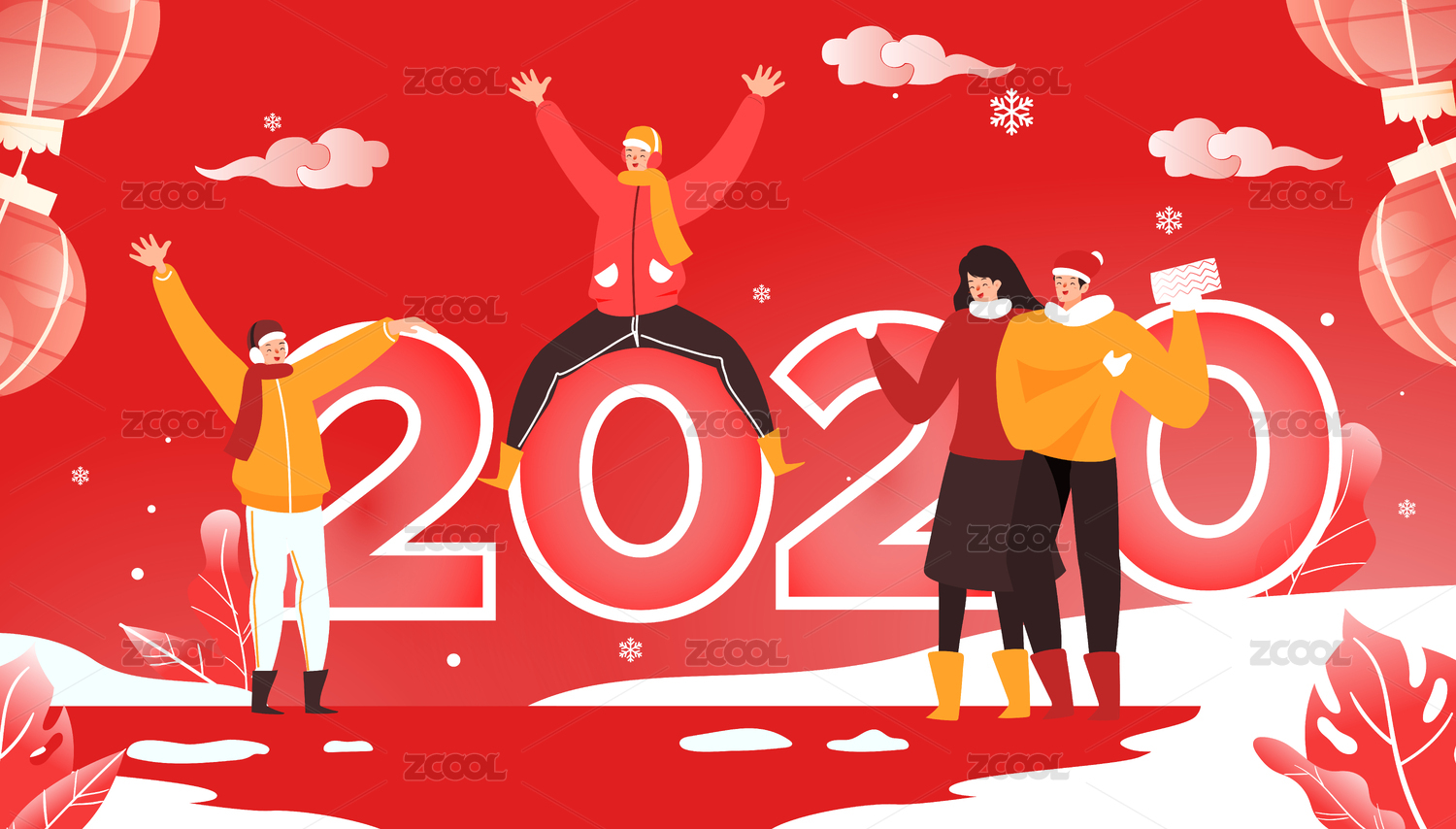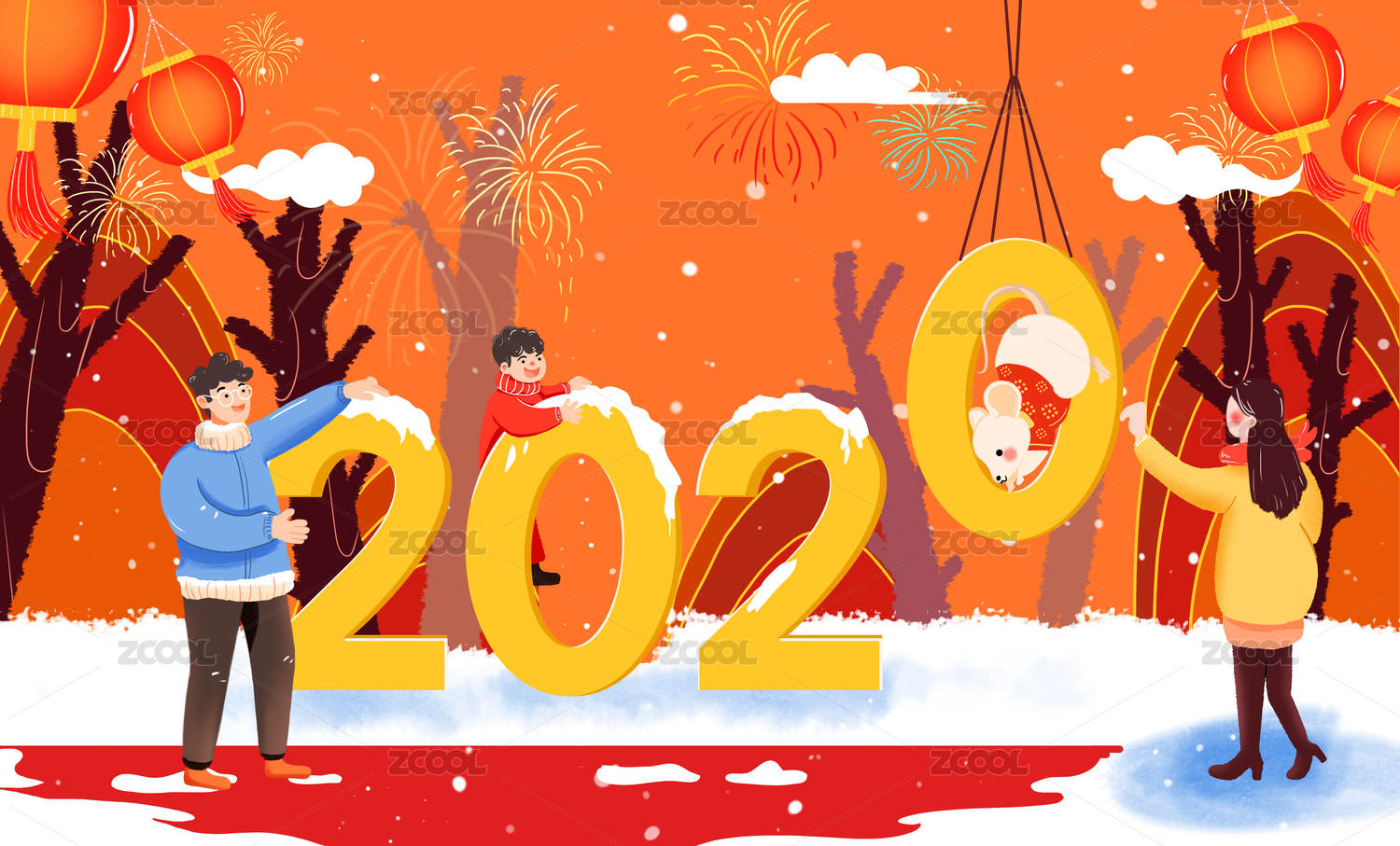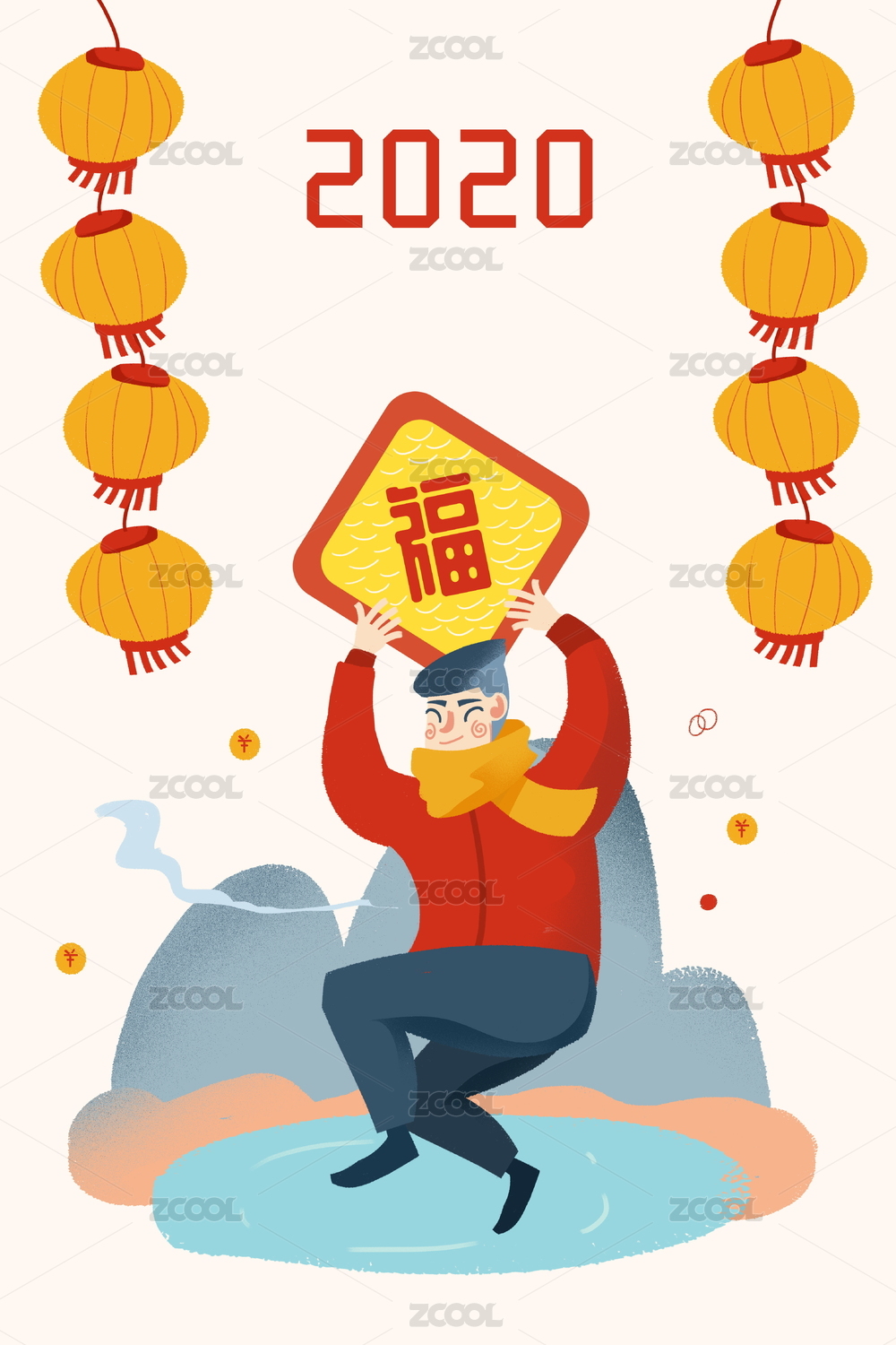 卡通手绘新年2020年卡通节日新年闪屏海报插画
