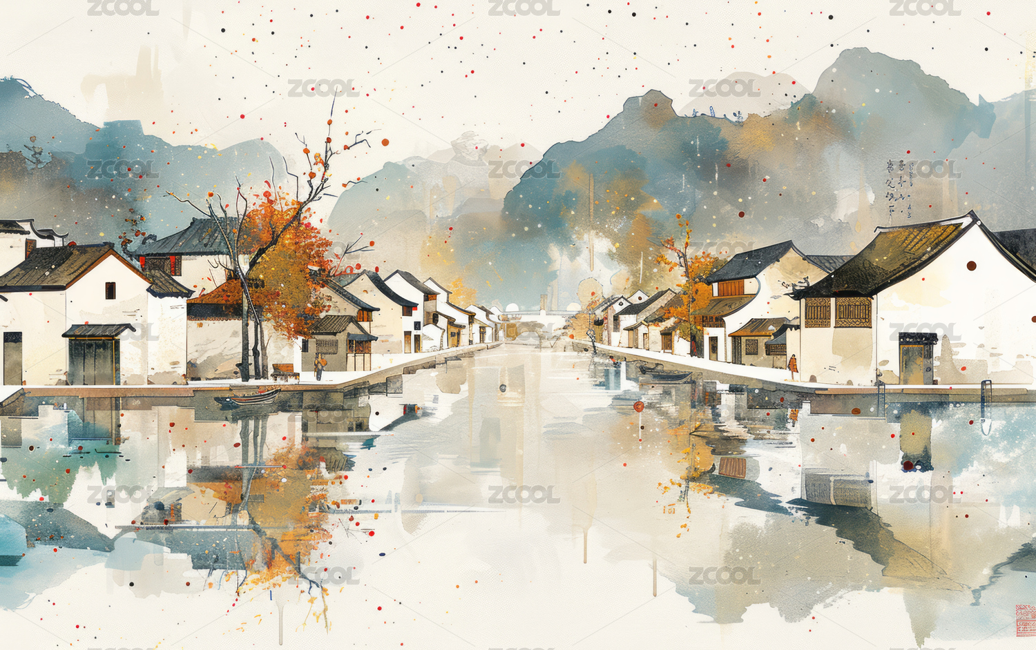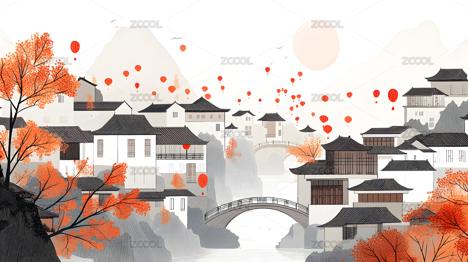 高山,天空,风景,户外,自然,建筑,宁静,AI数字艺术,建筑外部,树