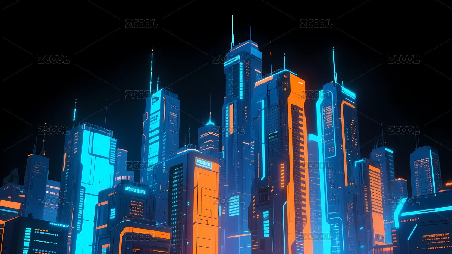 未来,都市,夜景,霓虹灯,高楼大厦,水边,倒影,繁华,现代化,科技感