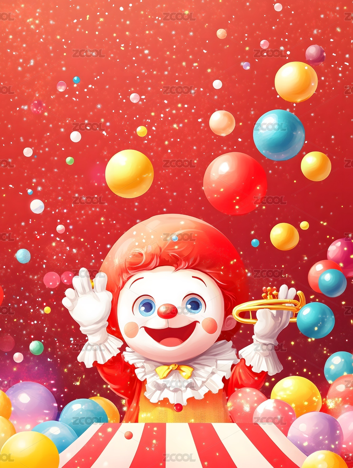 红色,小丑,杂技,杂耍,抛球,表演,舞台,猴子,吹喇叭,马戏团