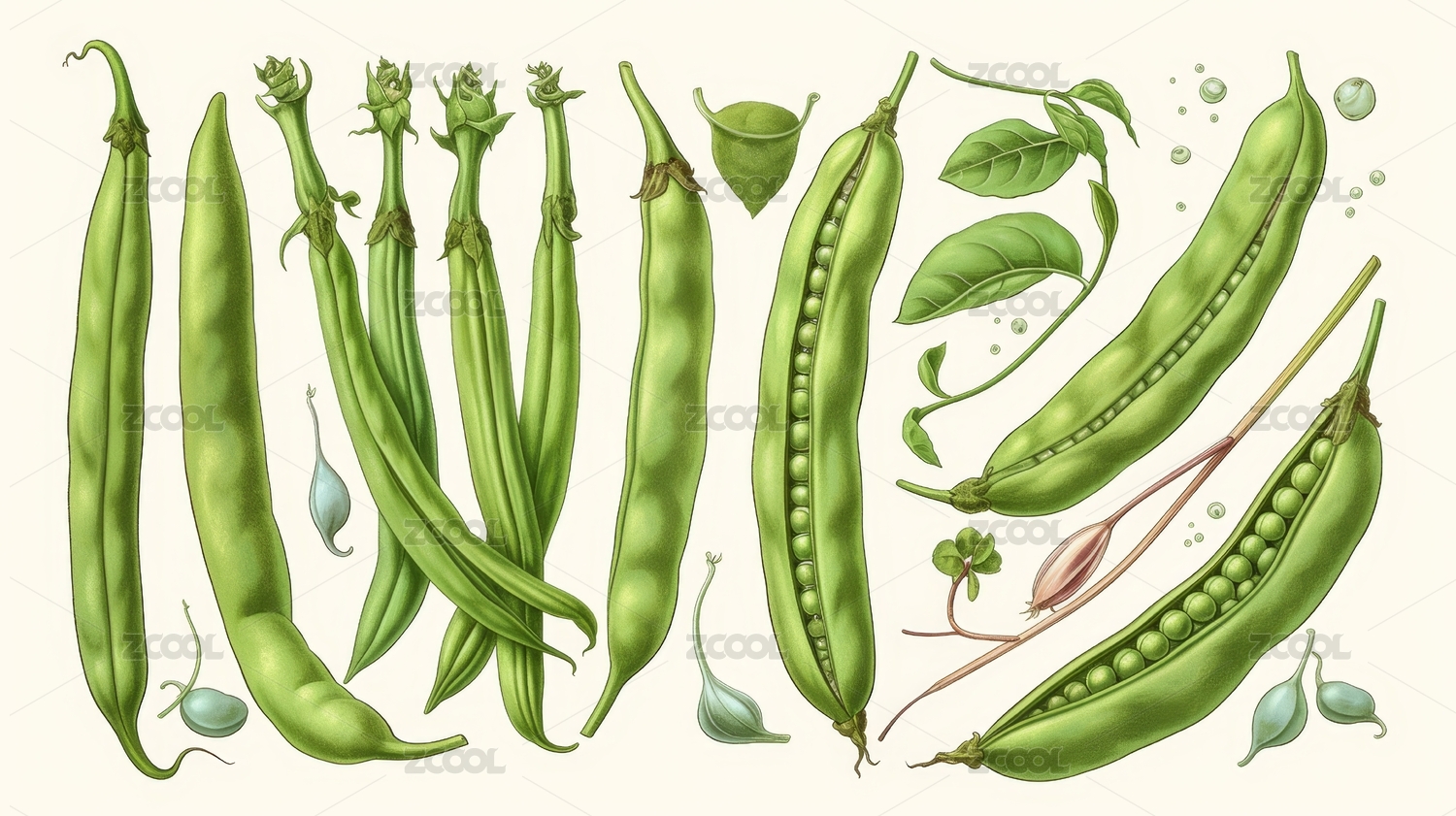 手绘,蔬菜,菜蔬,食材,豌豆,豆角,豇豆,豆荚,插画,植物