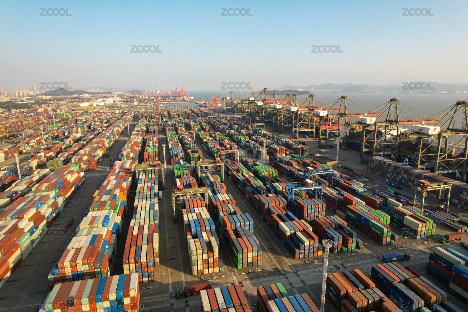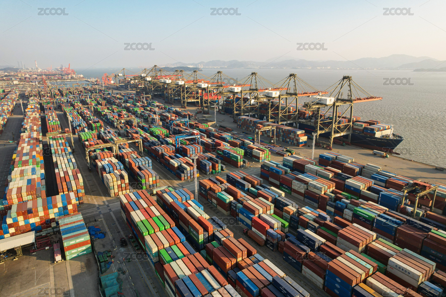 浙江省舟山市洋山港-航拍集装箱货运码头