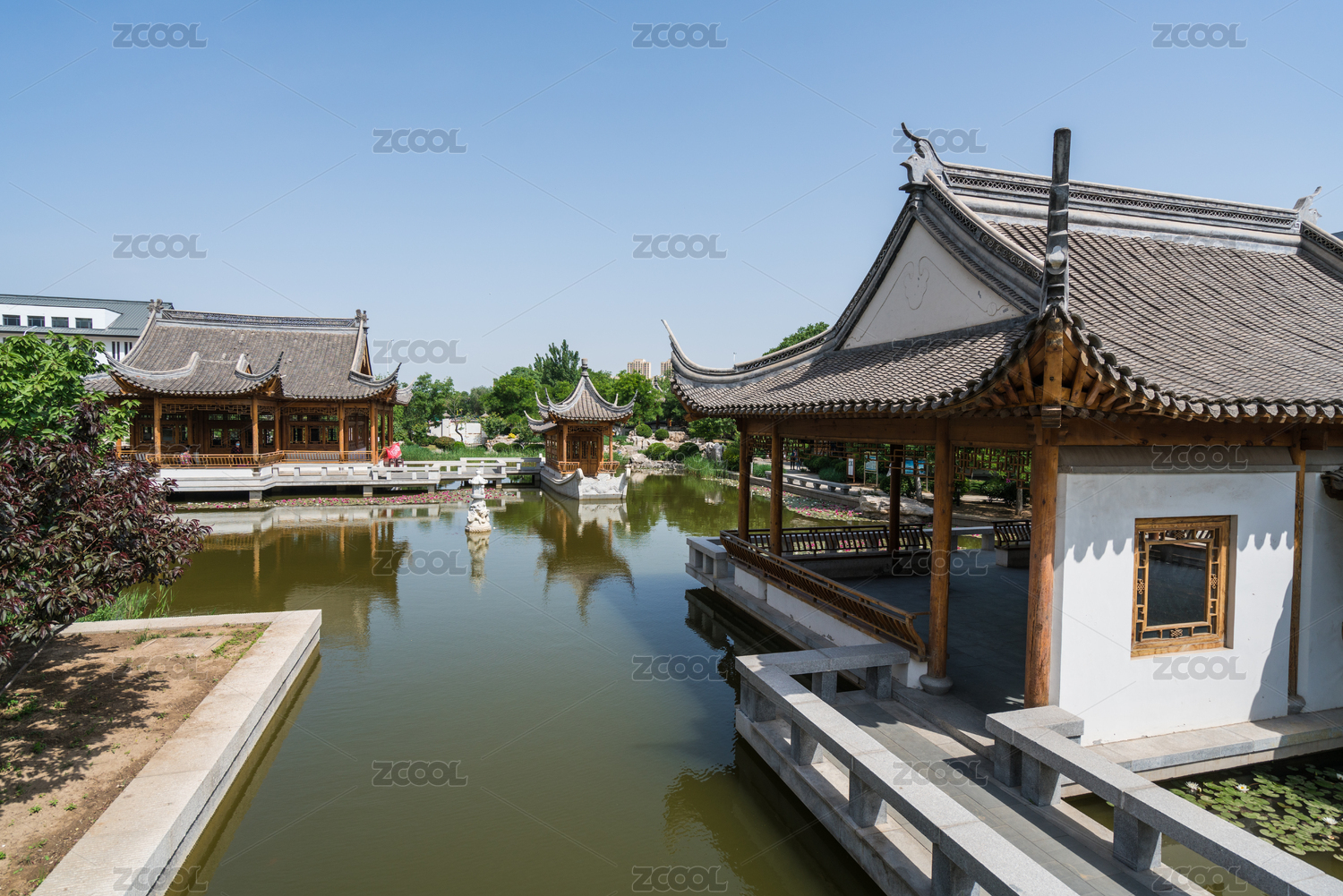 中国河南省商丘市月老公园水榭园林建筑