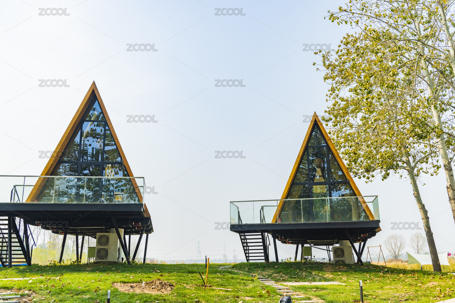 露营基地里的尖顶小木屋