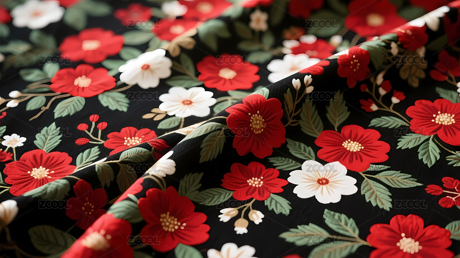 红白花卉绿叶布料