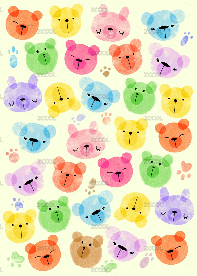 儿童,卡通,水彩,肌理插画,背景,可爱,小熊,图案,四方连续,设计
