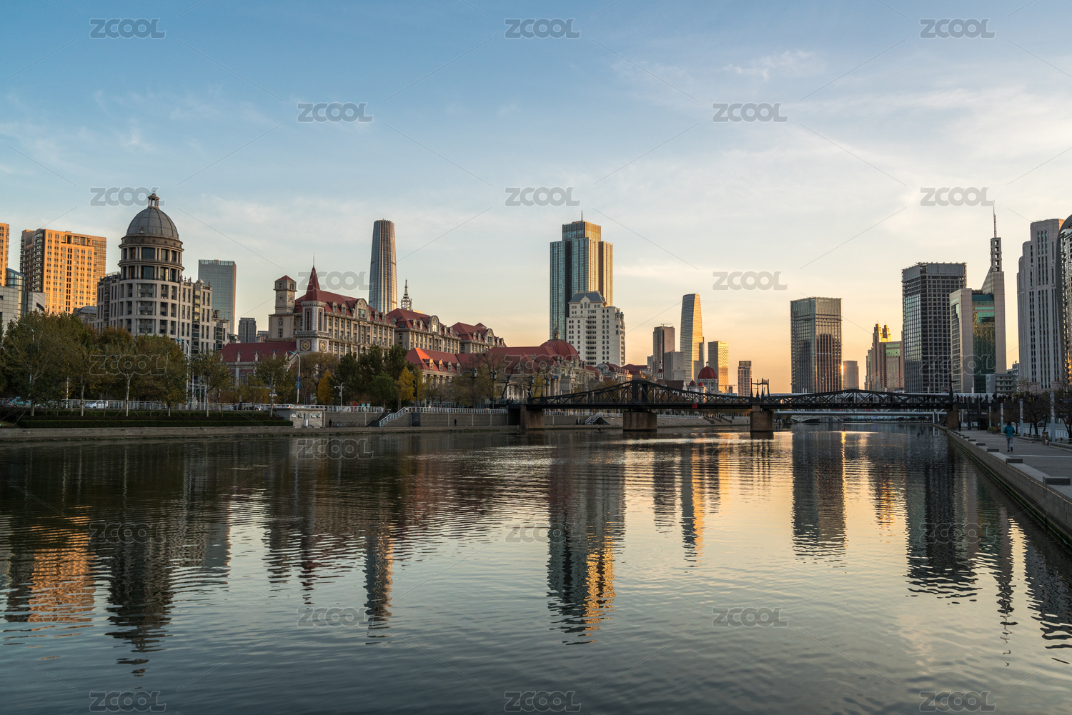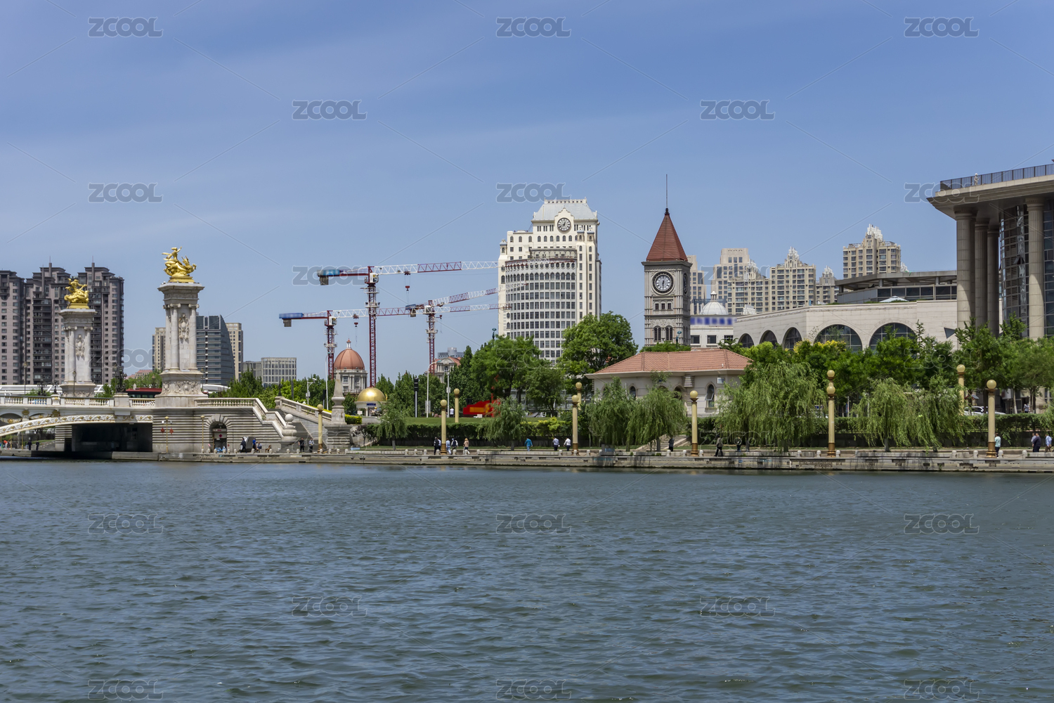 天津市海河沿岸,意大利风情区北安桥与教堂
