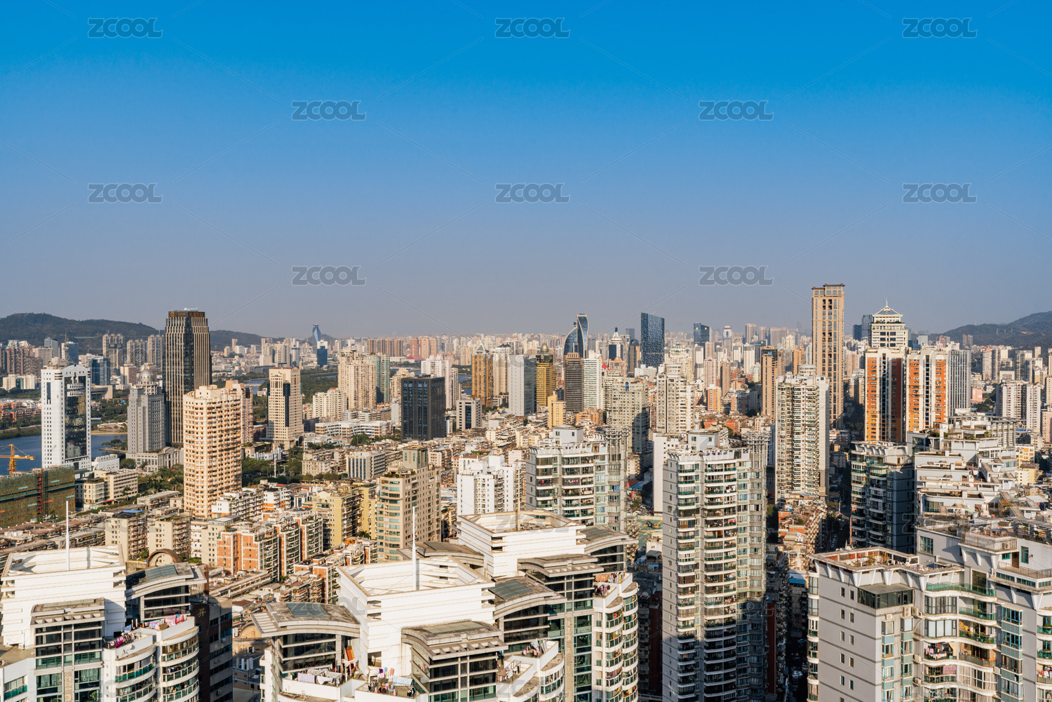 中国福建省福州市城区高楼建筑日光环境景观