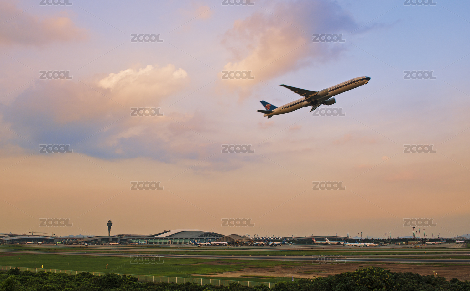 机场跑道飞机起飞航空运输旅游出发商务背景