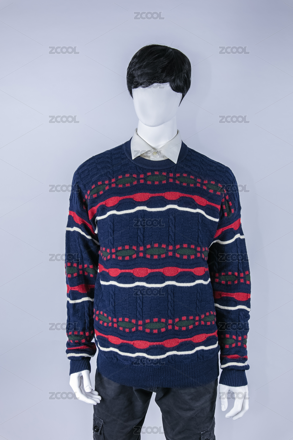 民国风男式冬季横条纹长袖保暖毛衣服装
