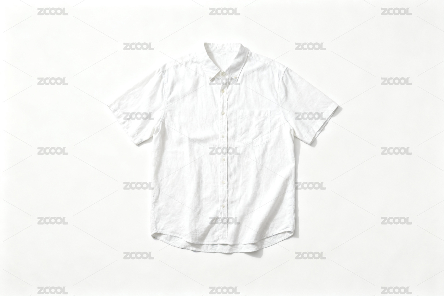 白色短袖衬衫平铺展示