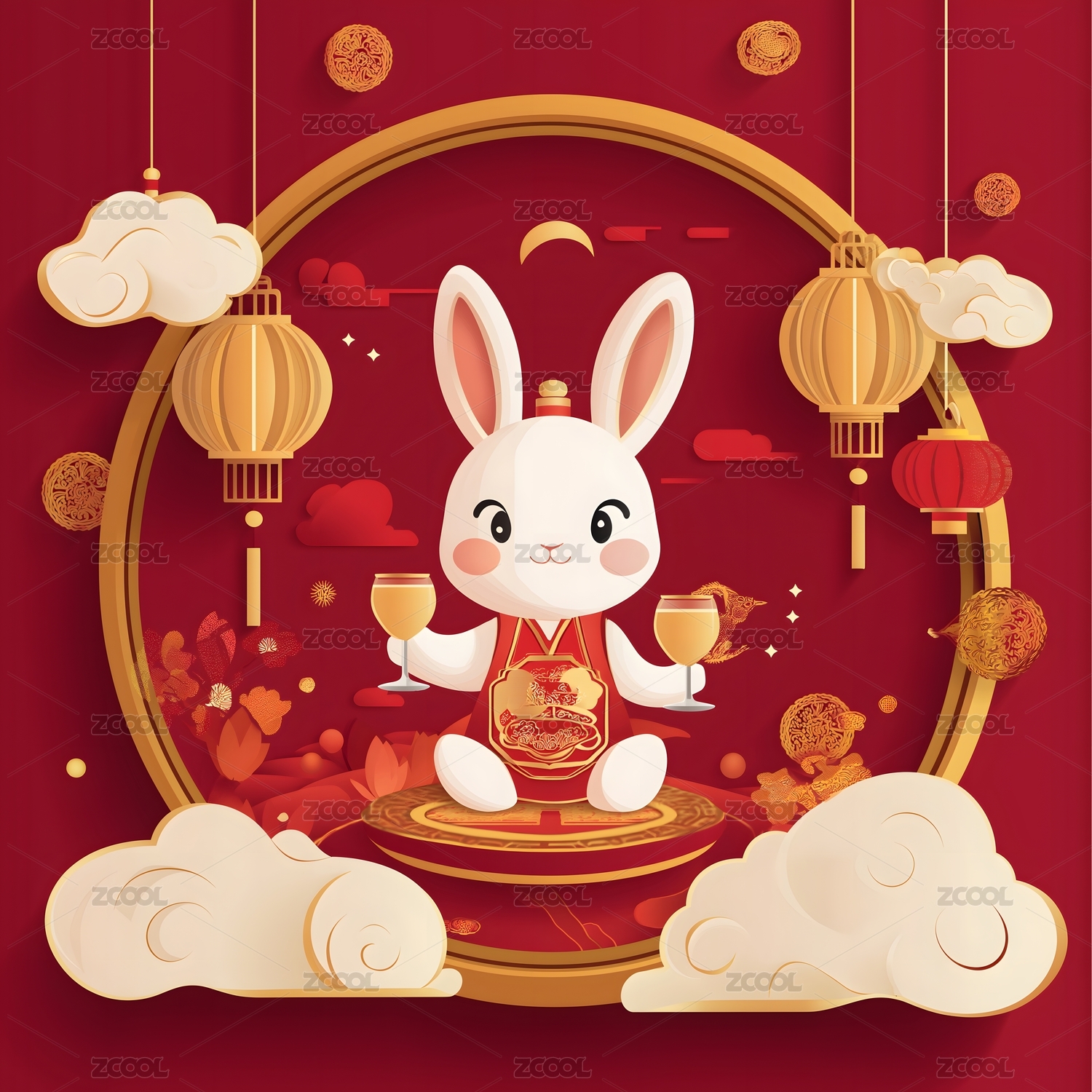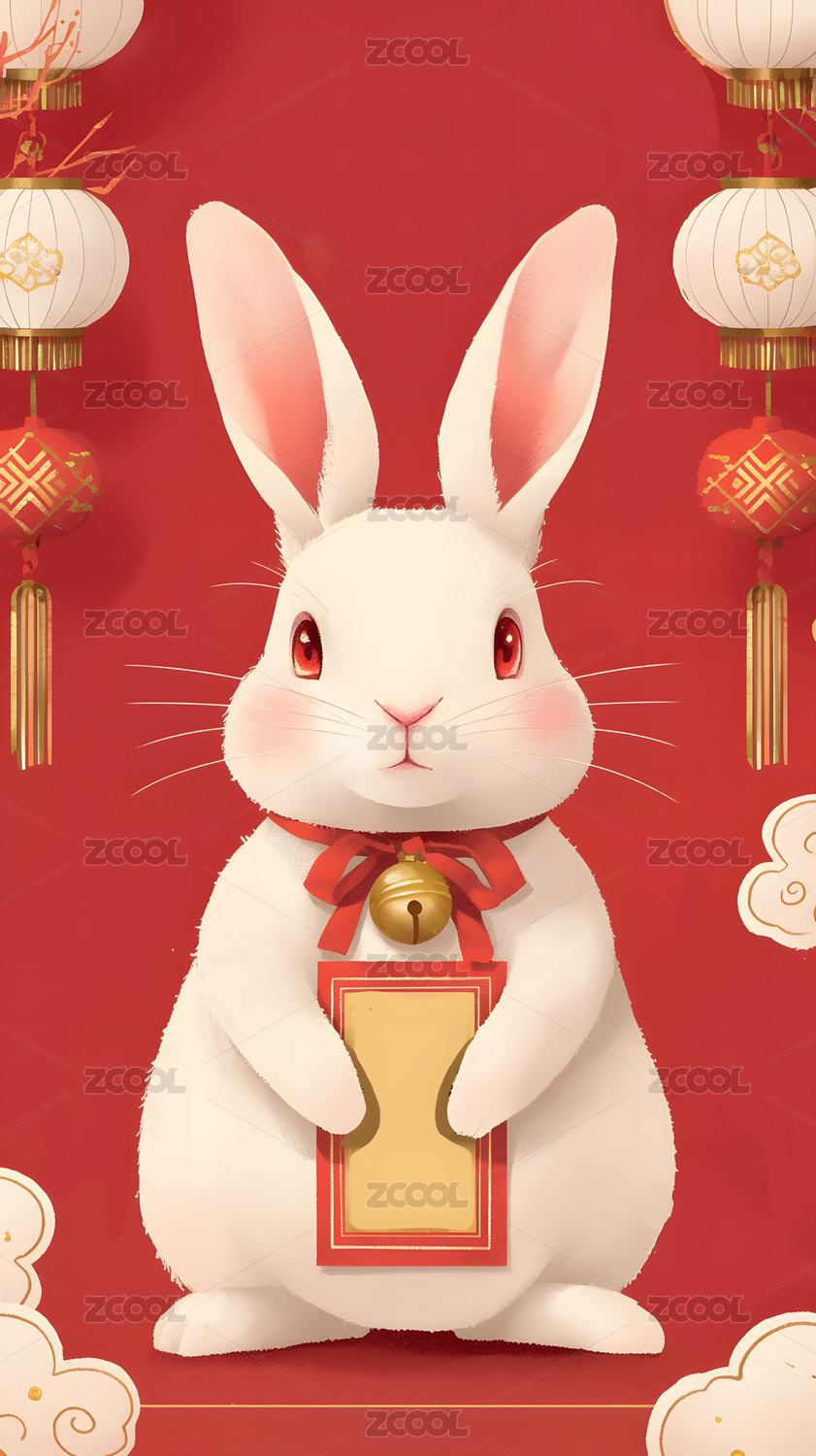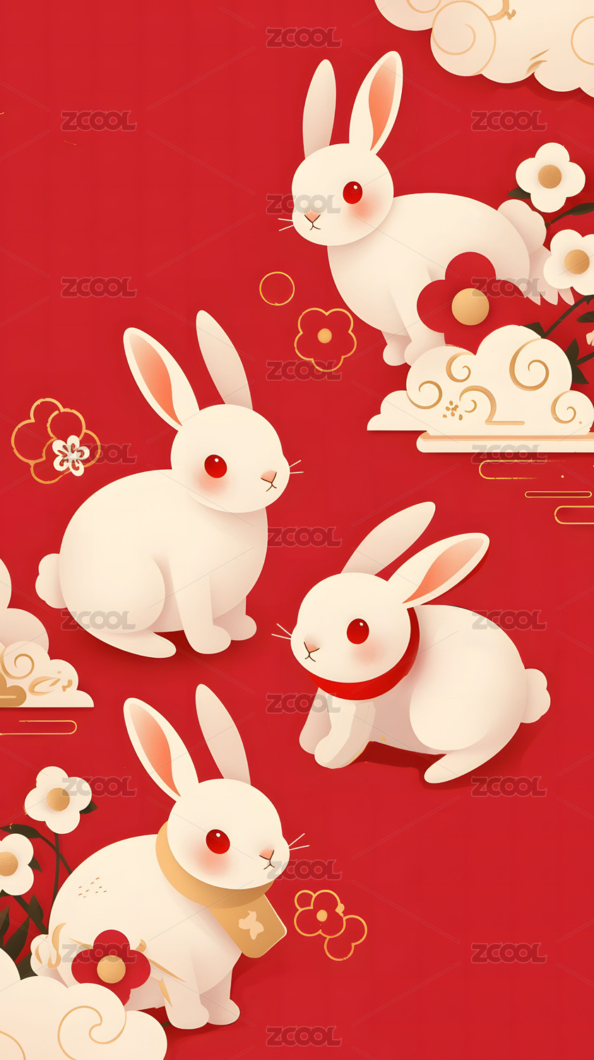 红色背景卡通白兔