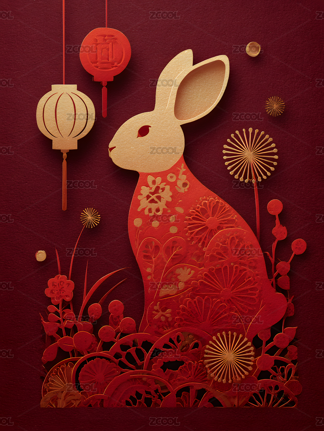 玉兔迎春,花灯喜庆