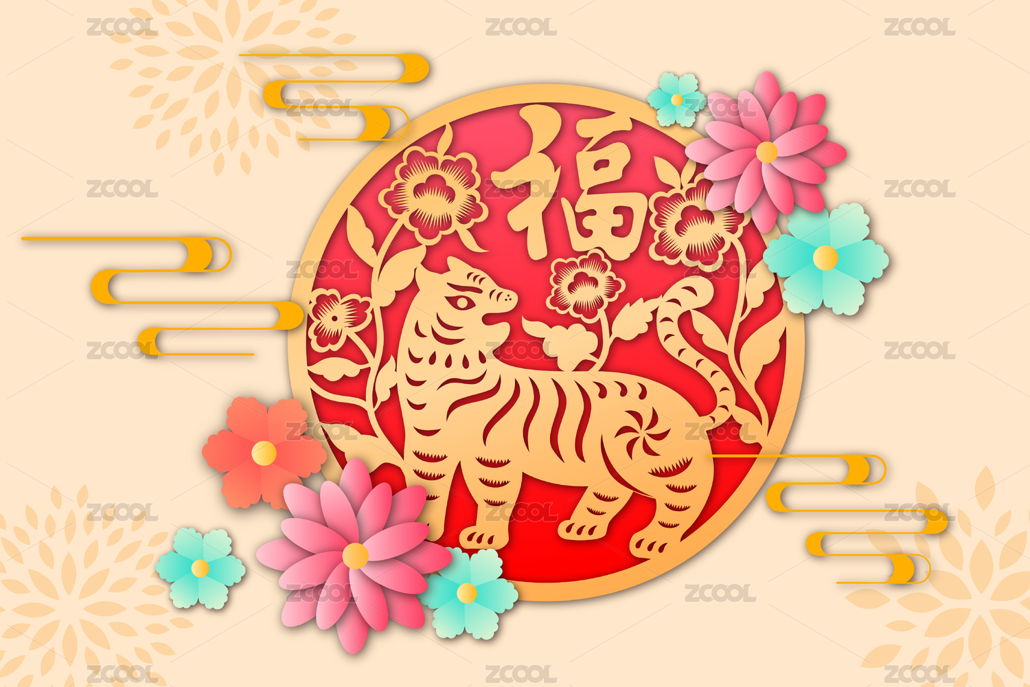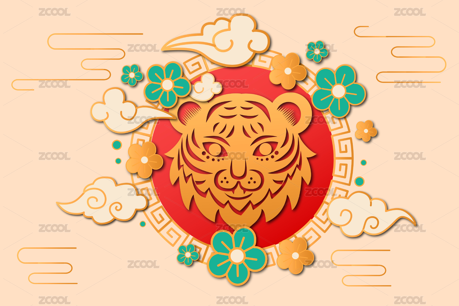剪纸,艺术,圆形,中国风,传统文化,白底,老虎,虎,虎头,虎年