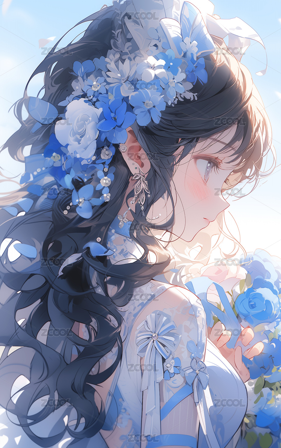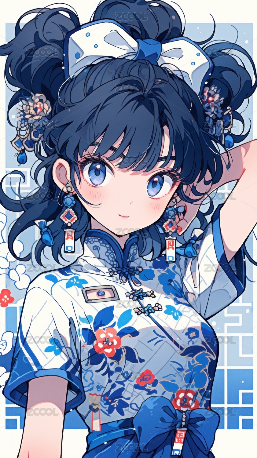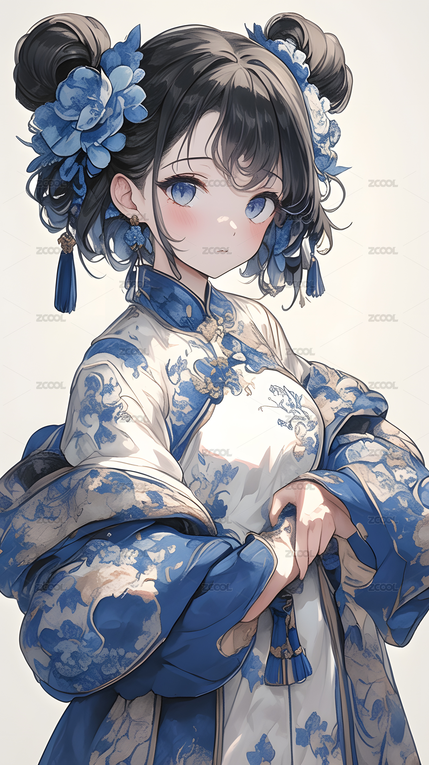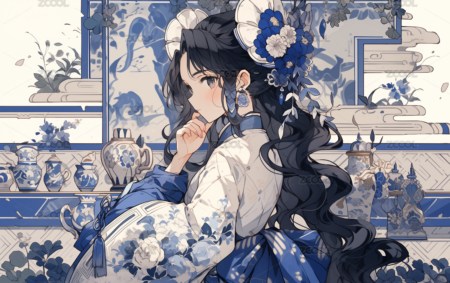 中国,中国的,传统的,青花瓷,风格,装饰,女孩,女人,美女,女士