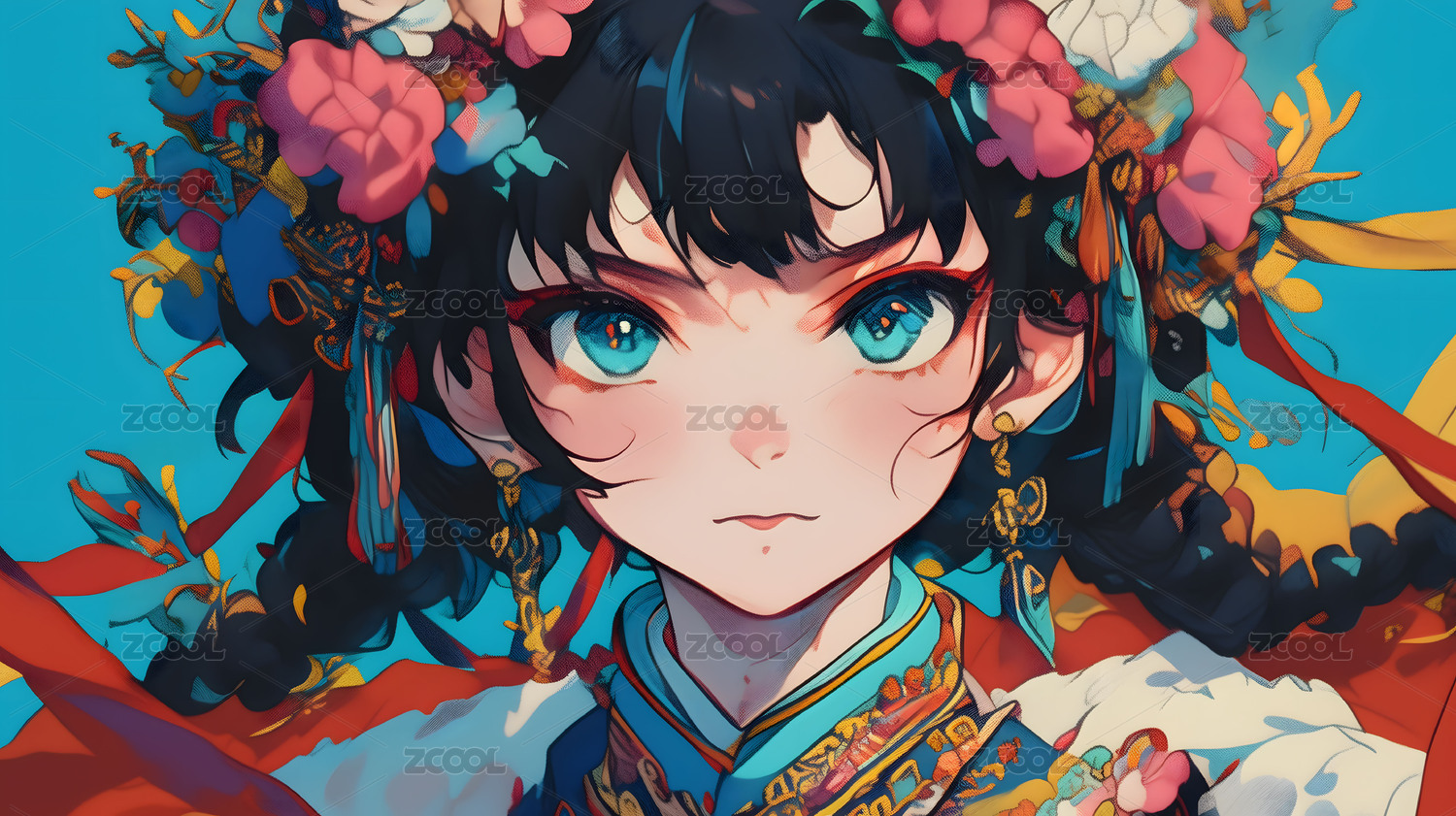 可爱的动漫女孩缤纷的色彩壁纸背景