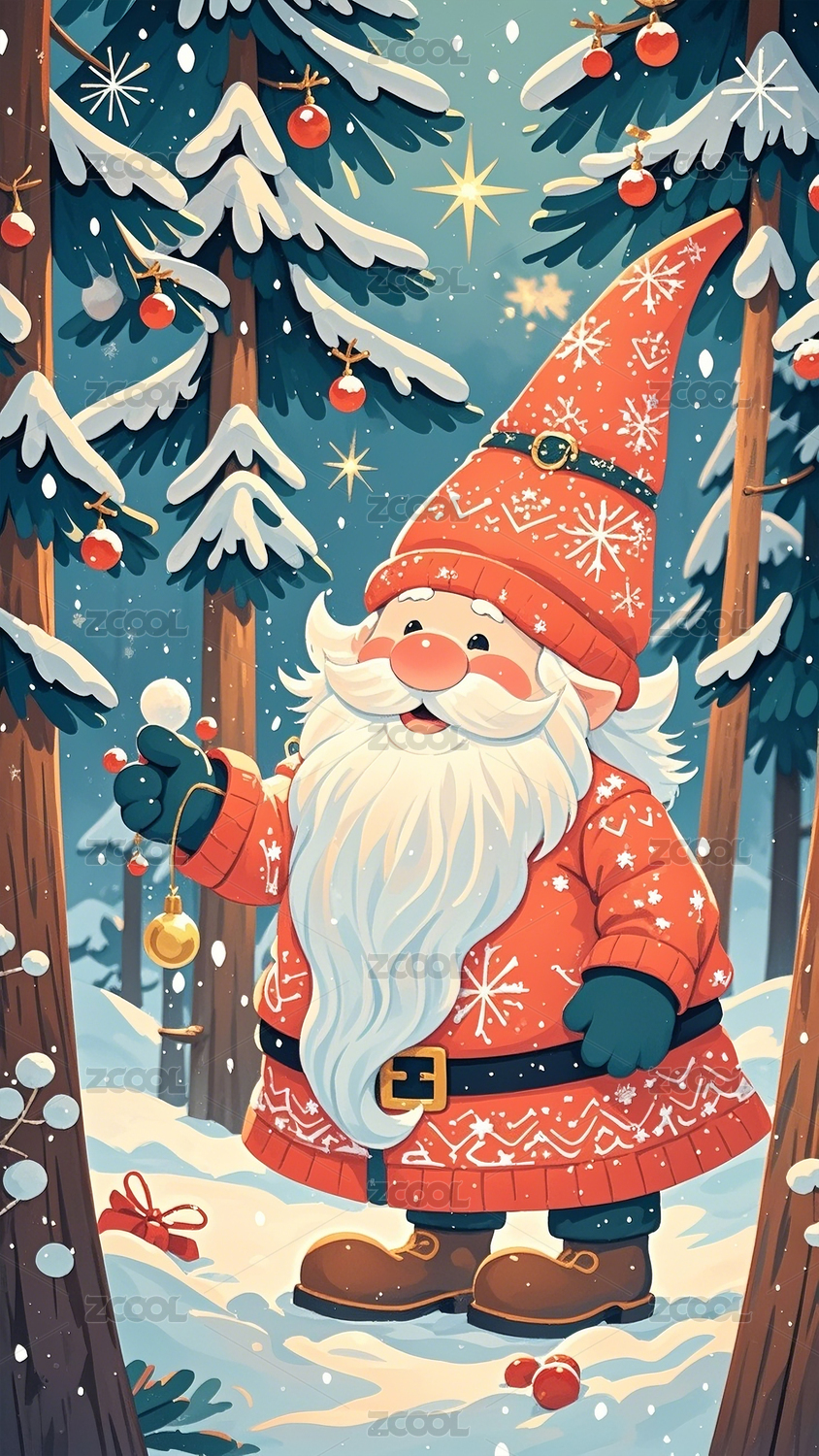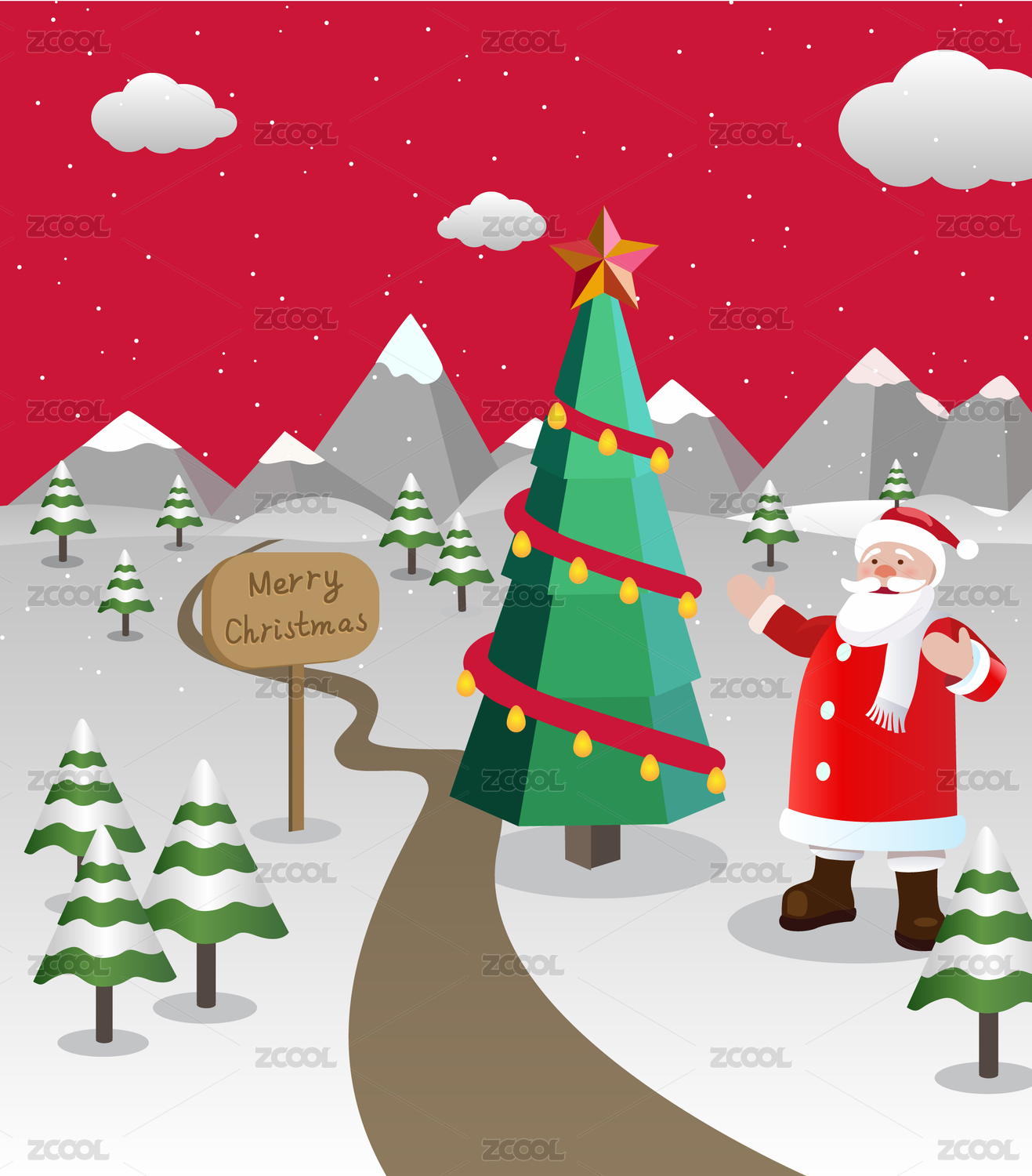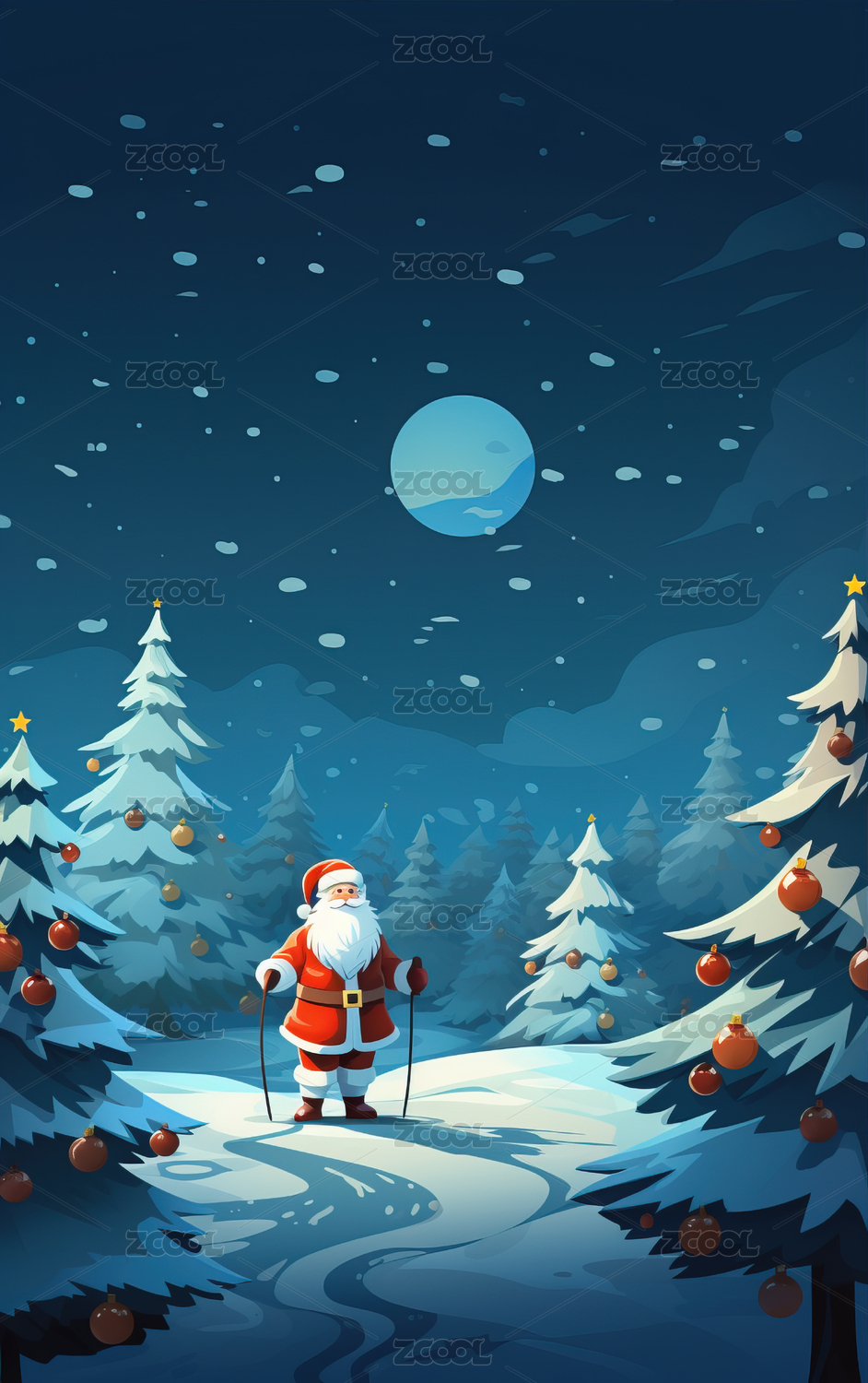 圣诞节,节日,装饰,插画,背景,圣诞树,圣诞老人,鹿,雪,冬天