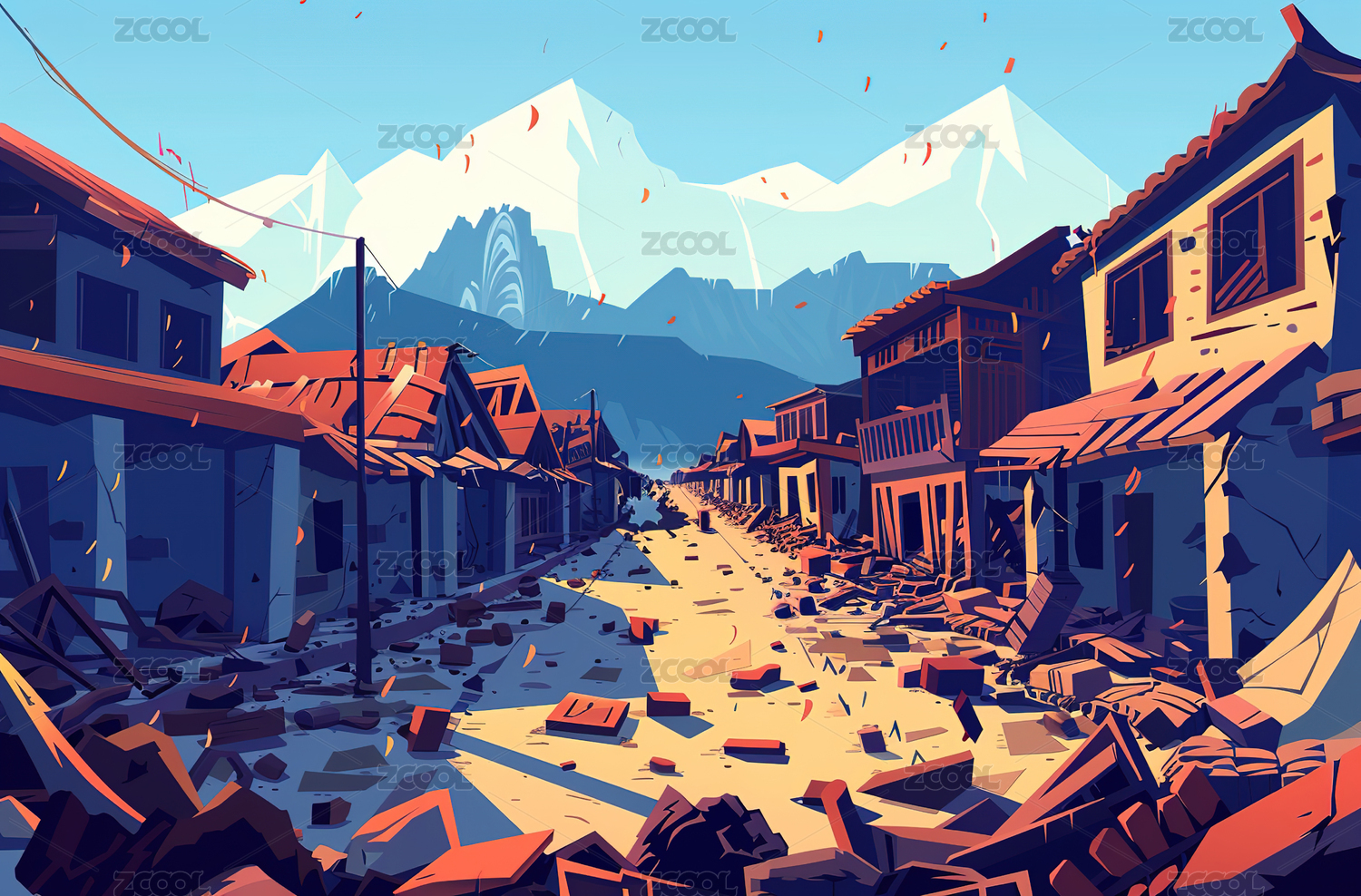 废墟,几何,色块,极简,颗粒,房屋,破损