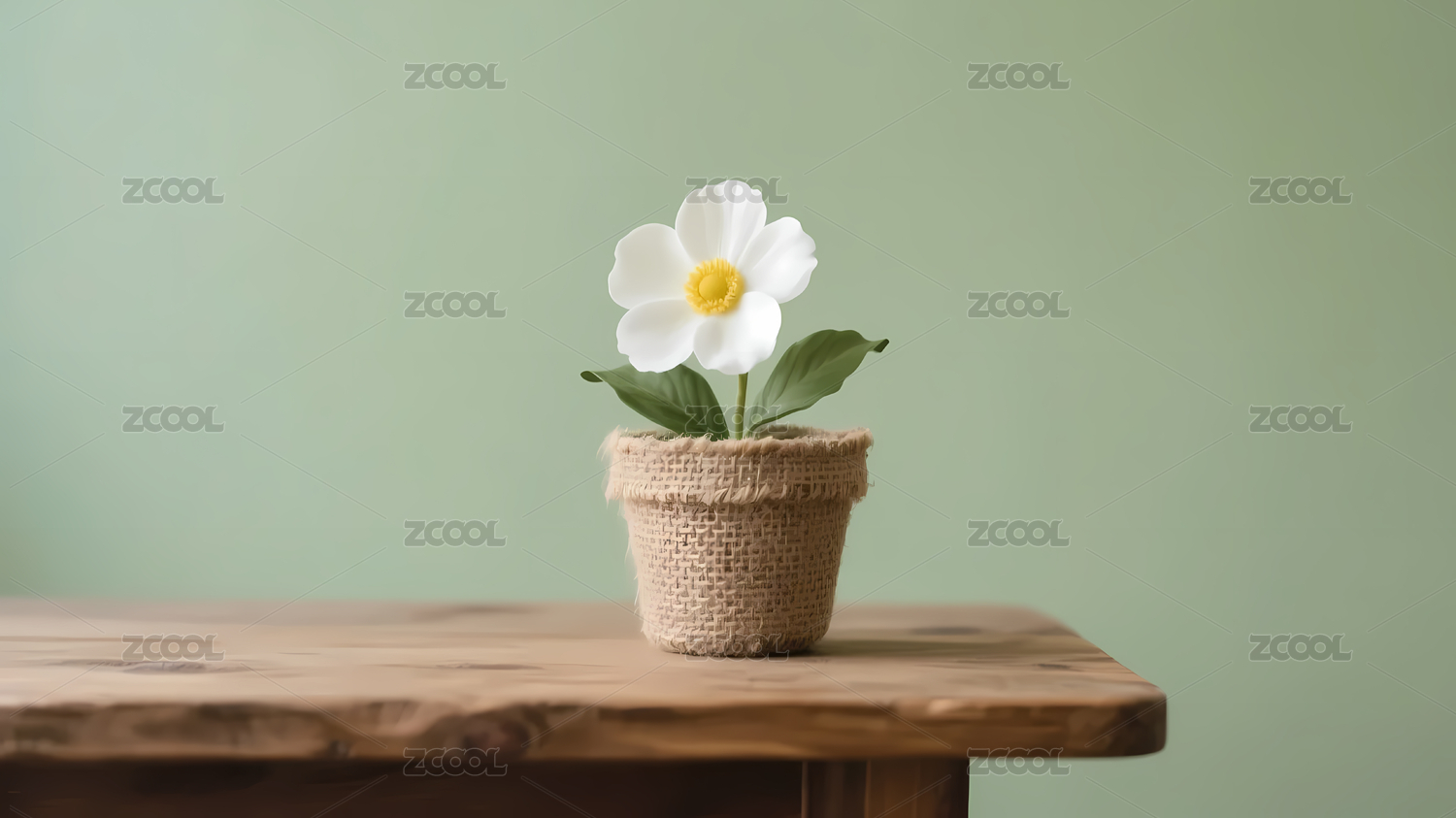 白色小花与麻布花盆