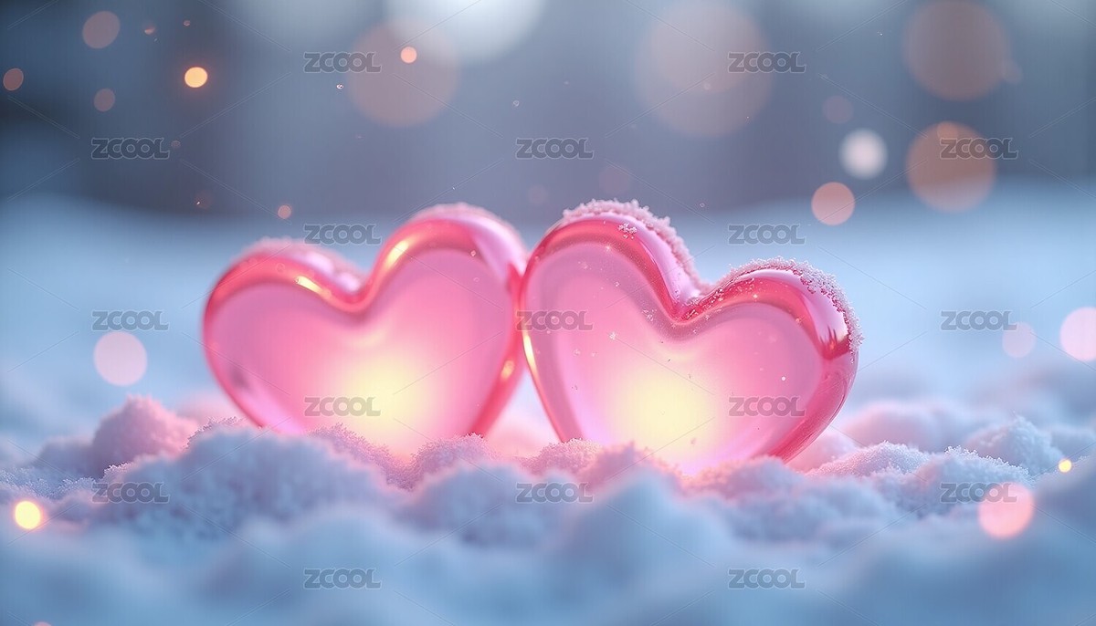 梦幻冬日粉色爱心灯饰雪地浪漫场景主题壁纸