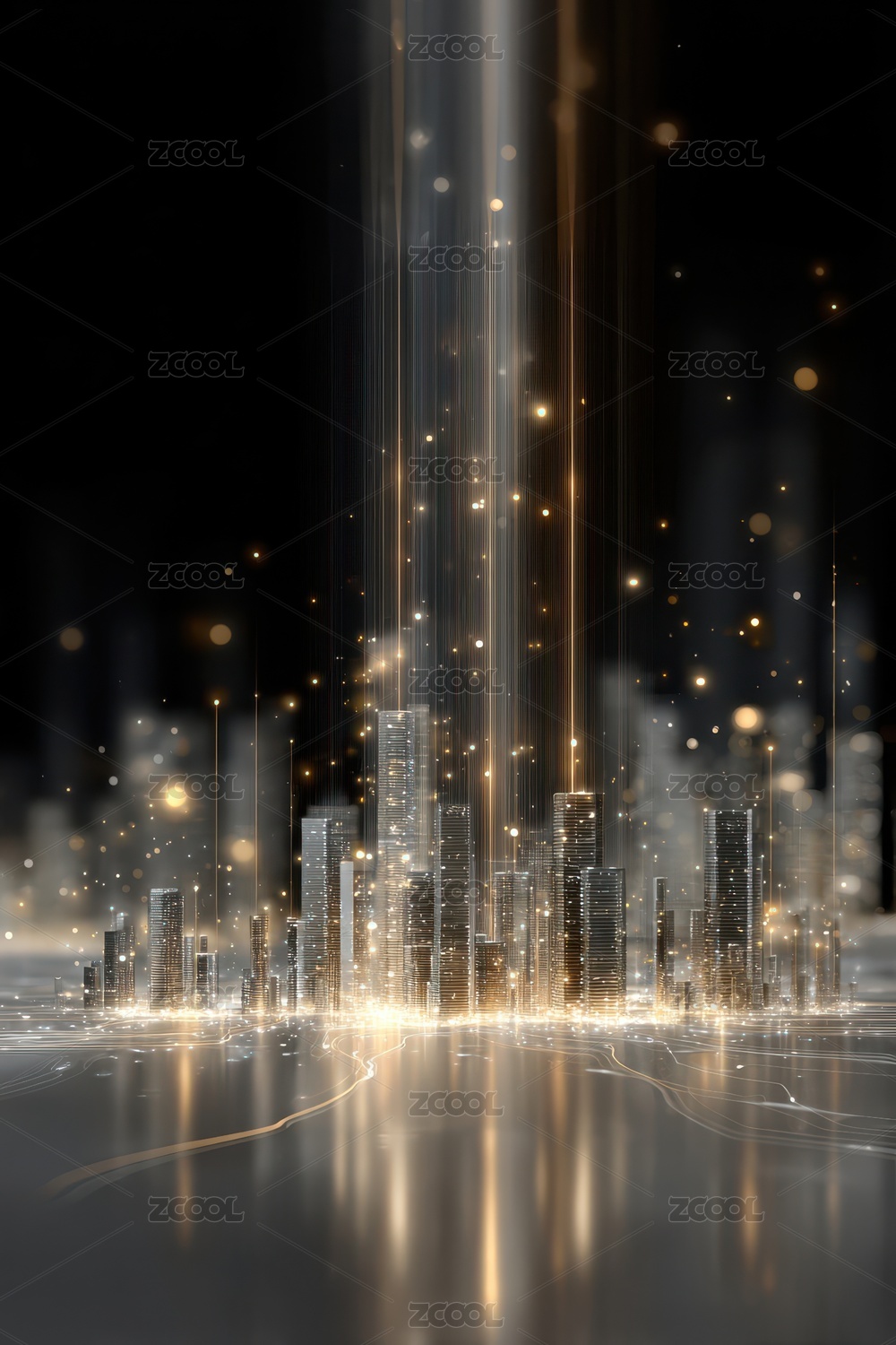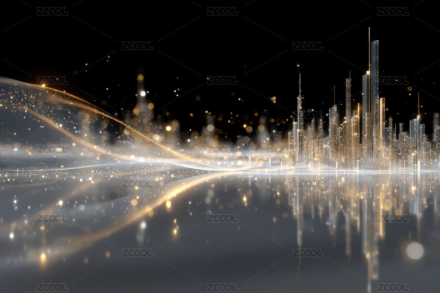金色,城市,夜景,灯光,建筑,现代,科技,未来,梦幻,灿烂