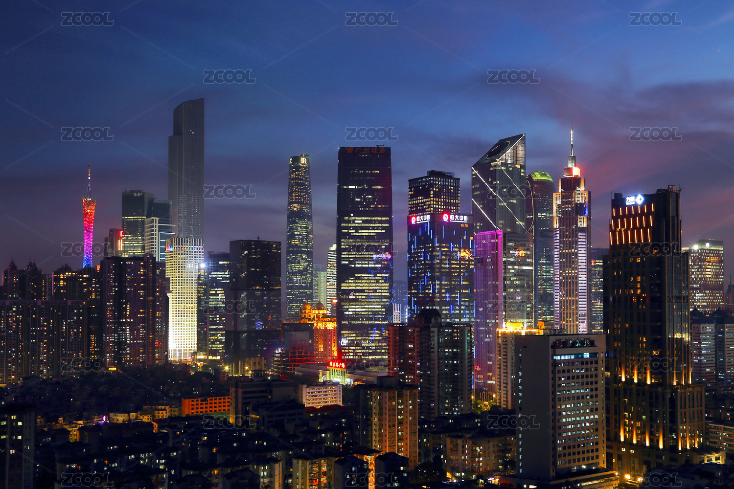 中国广州珠江新城CBD建筑群繁华夜景