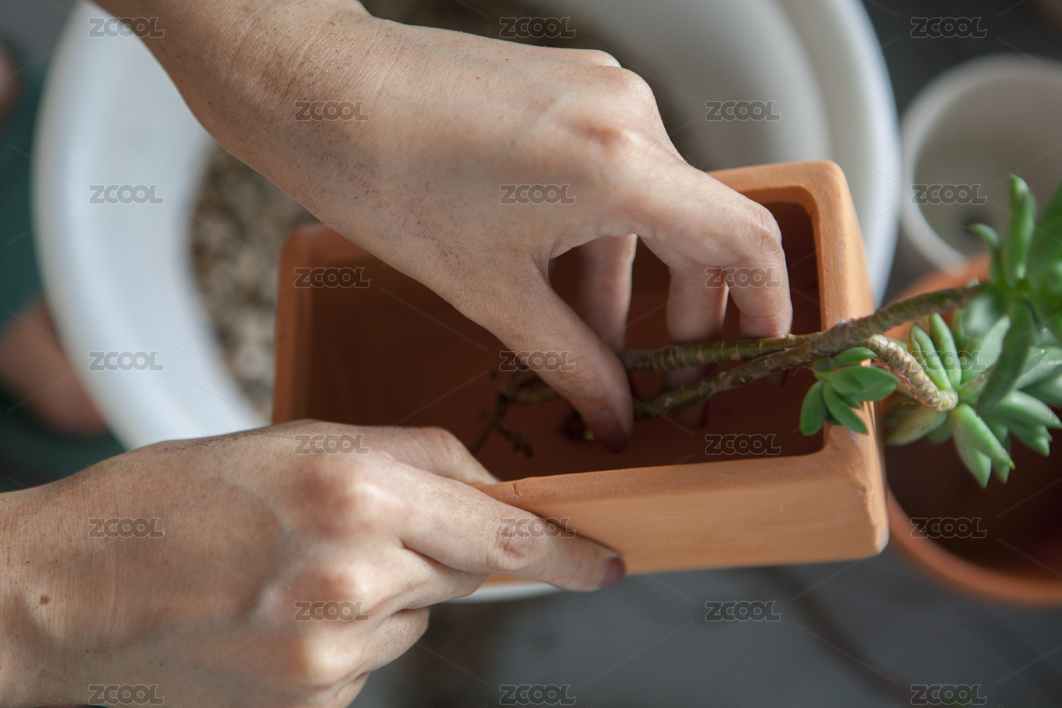 女生,花园,种花,女手,多肉植物,园艺,花盆,花器,换盆,整理