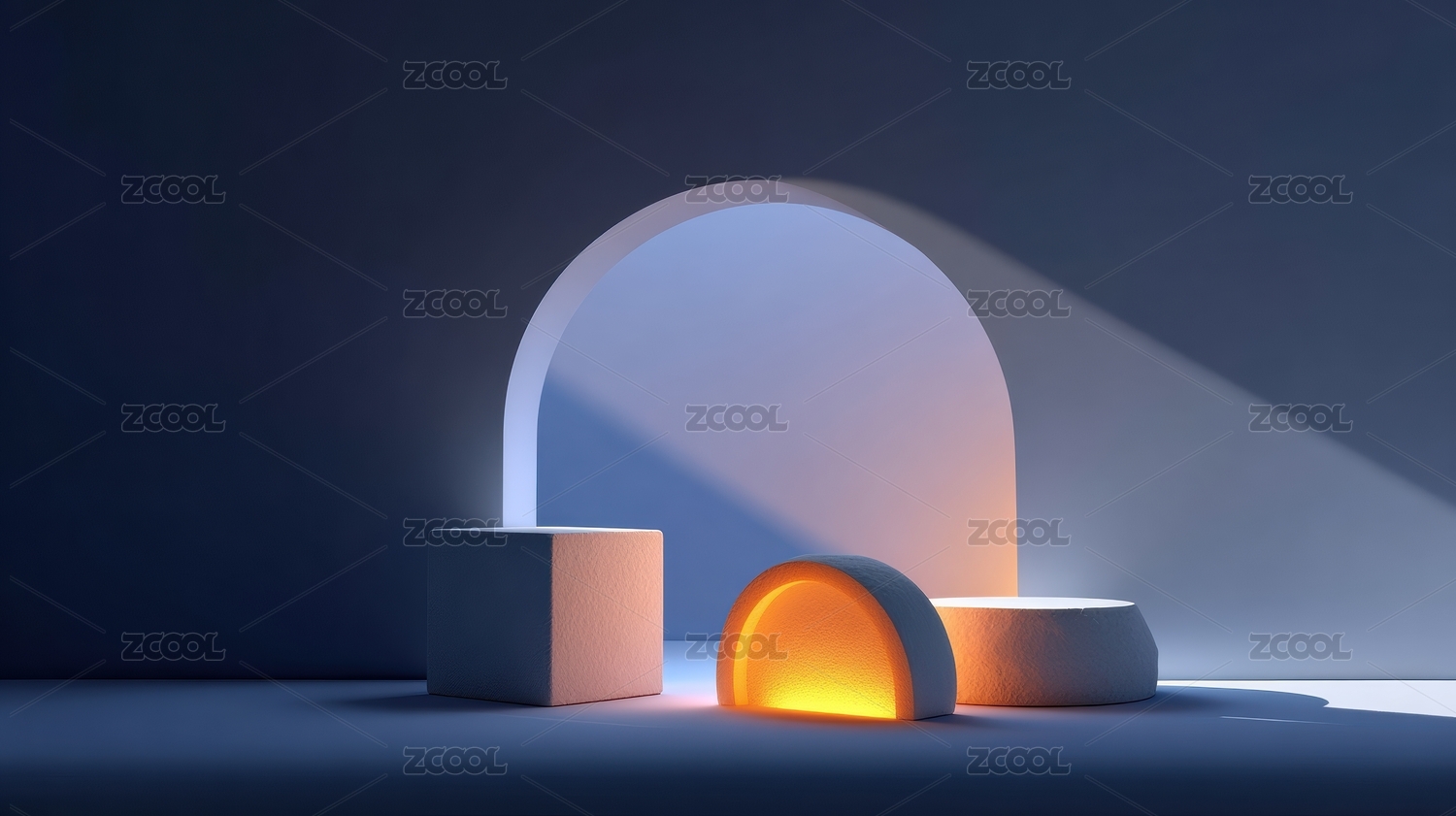 金色舞台展示产品 灯光照耀现代艺术氛围