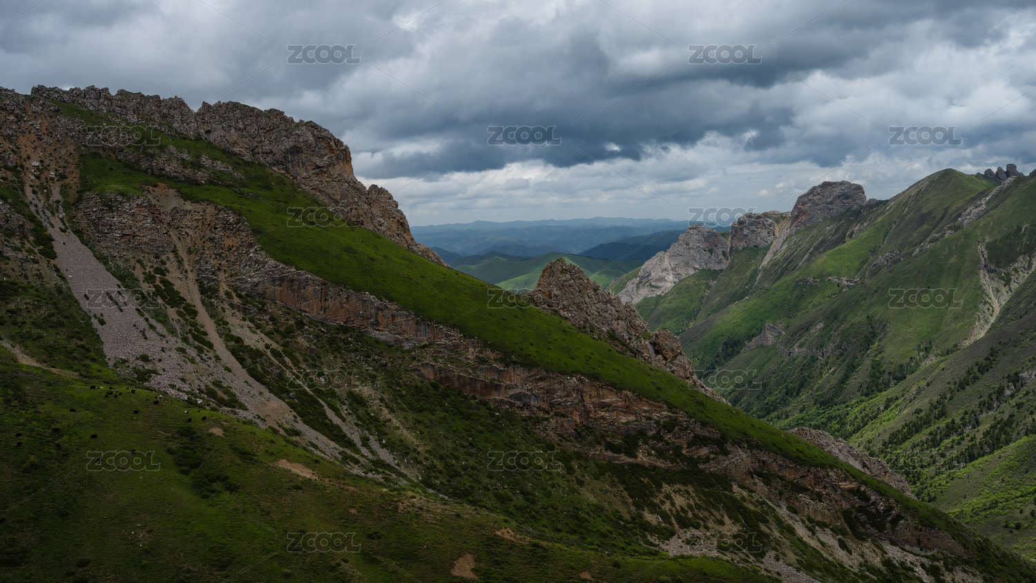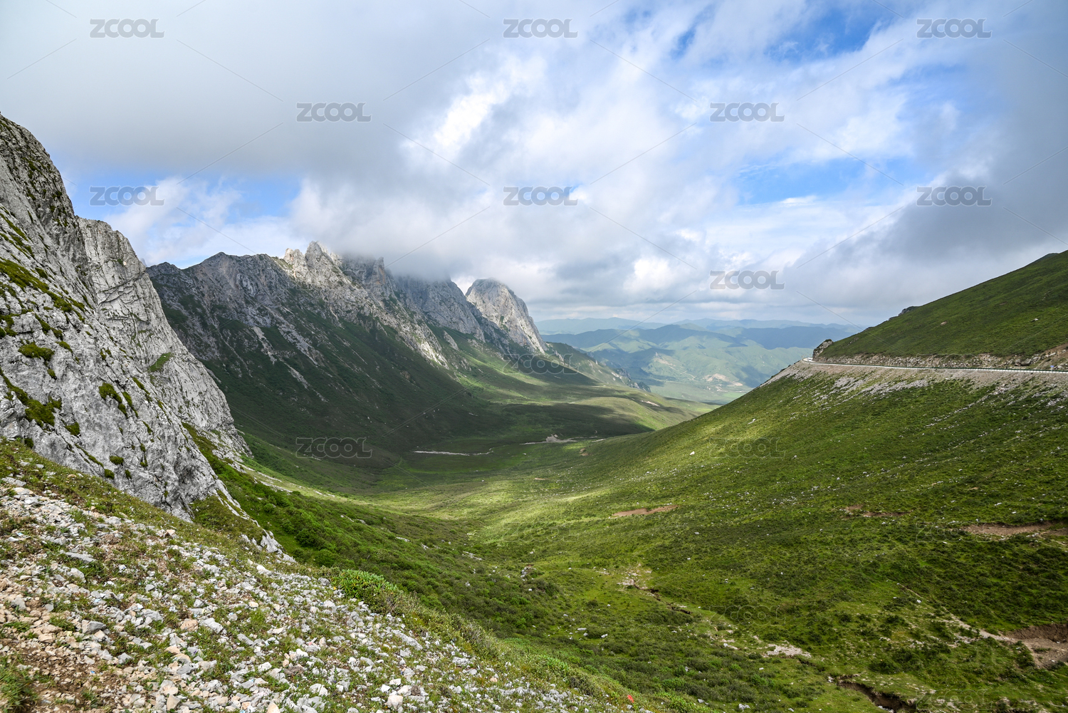 甘南洛克之路险峻奇绝山脉峡谷绿色草地