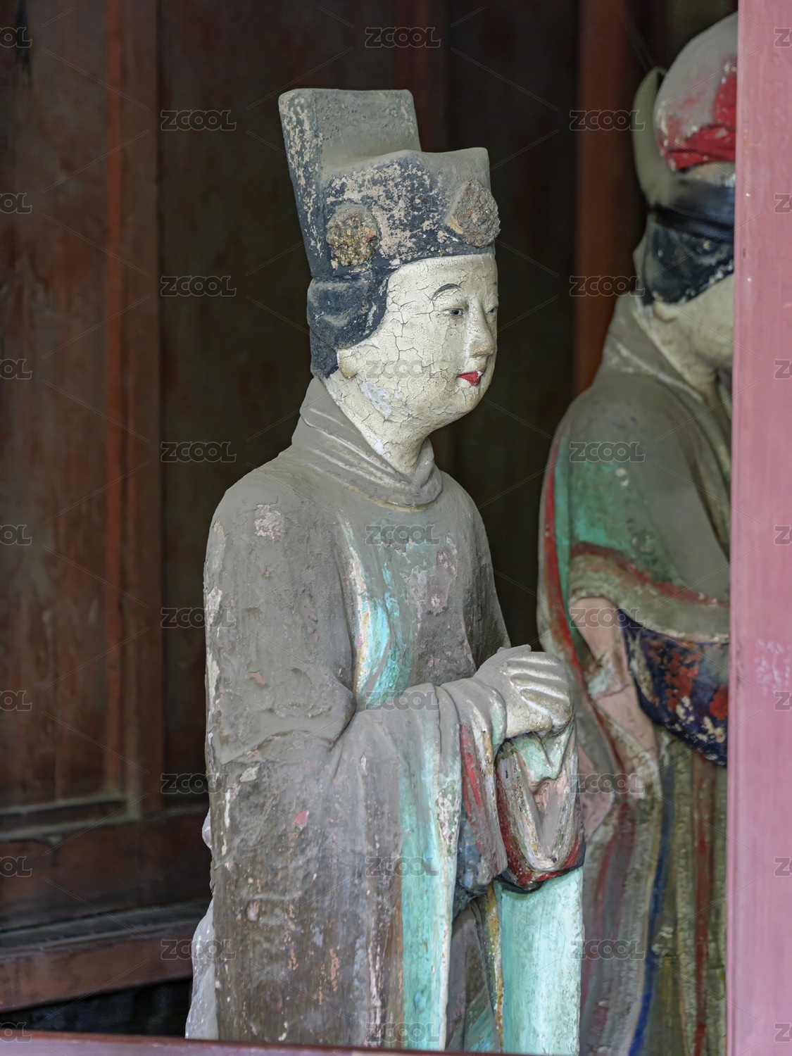 山西晋祠圣母殿彩绘雕塑 侍女像的特写