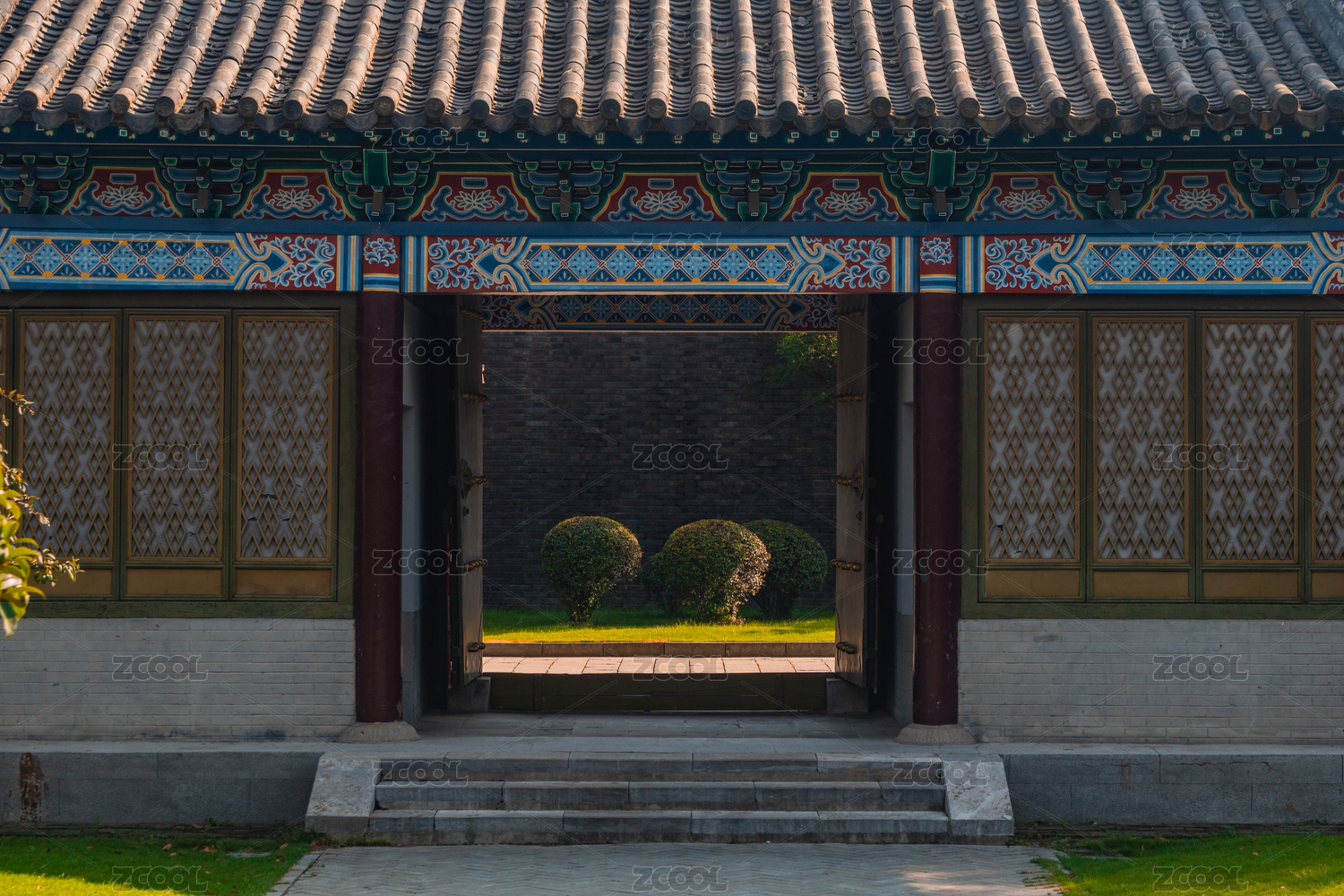 中式寺庙古典建筑红色木门