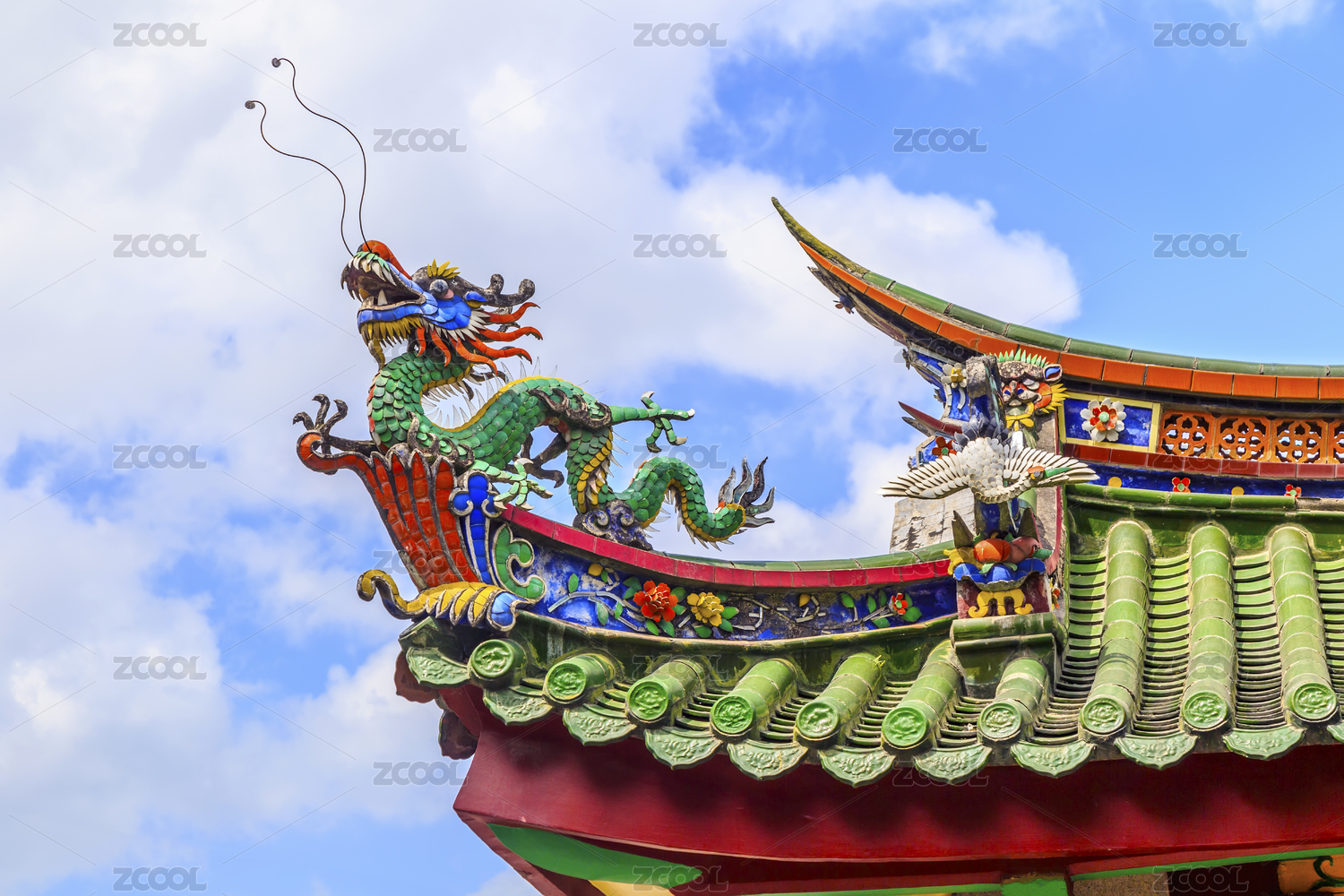 中国福建省泉州市关岳庙屋顶建筑造型景观