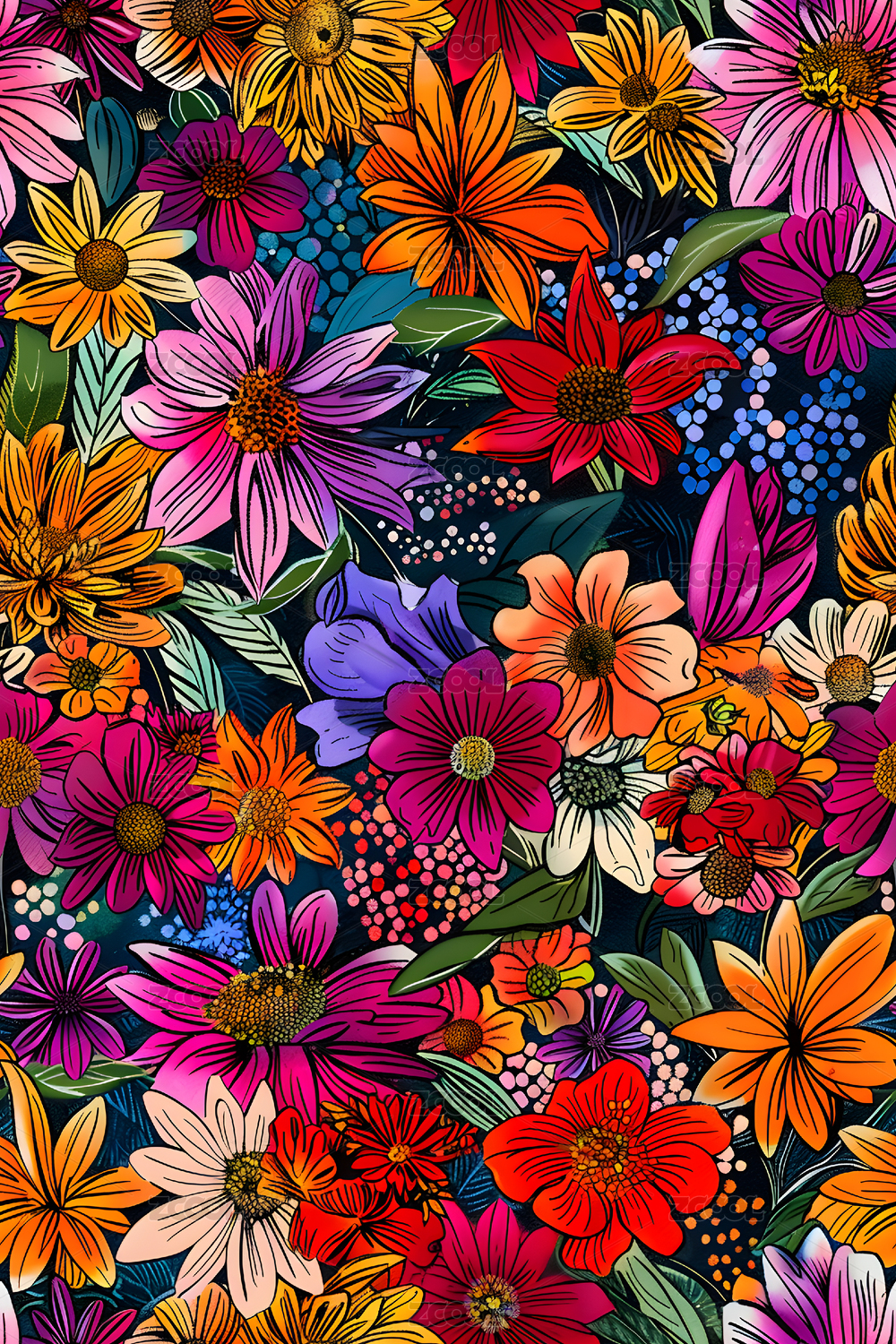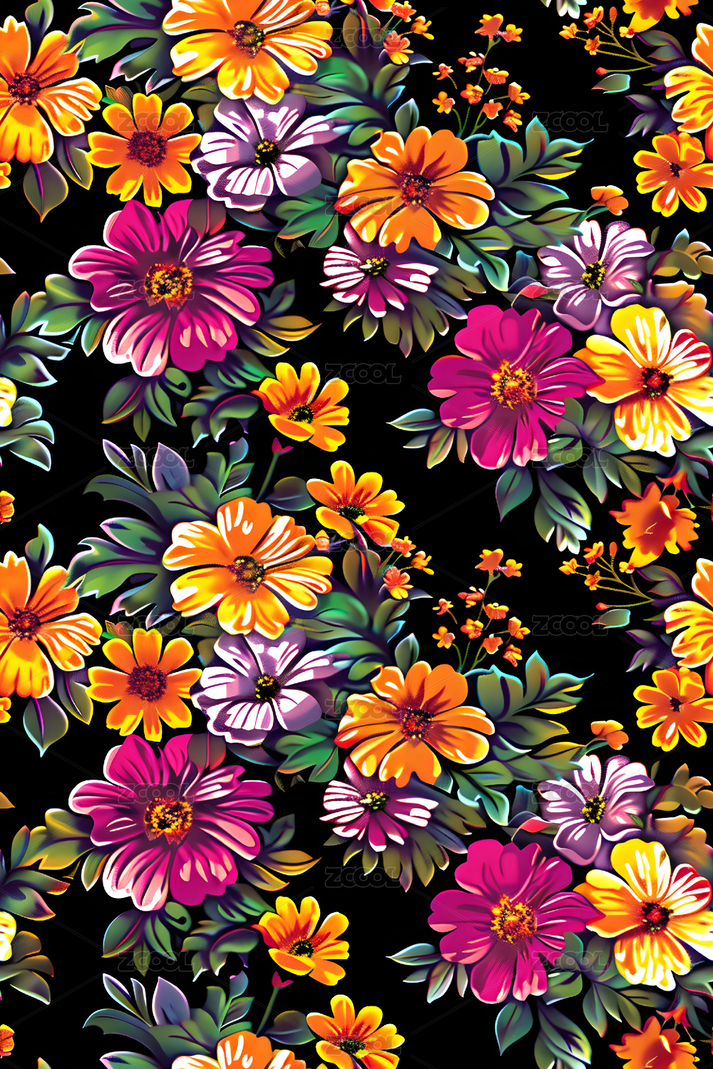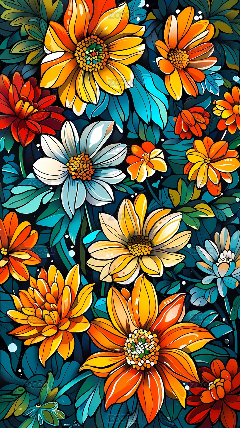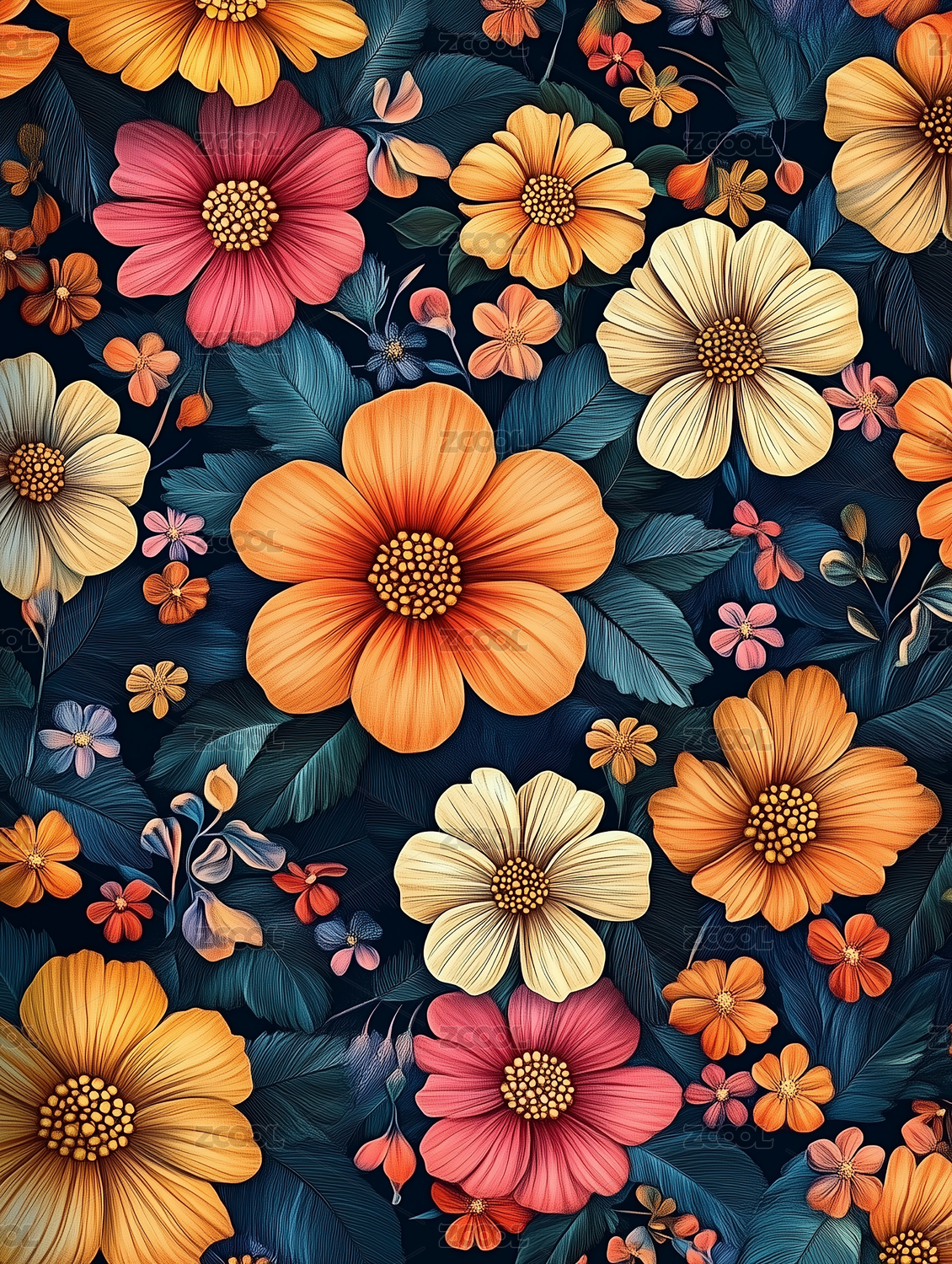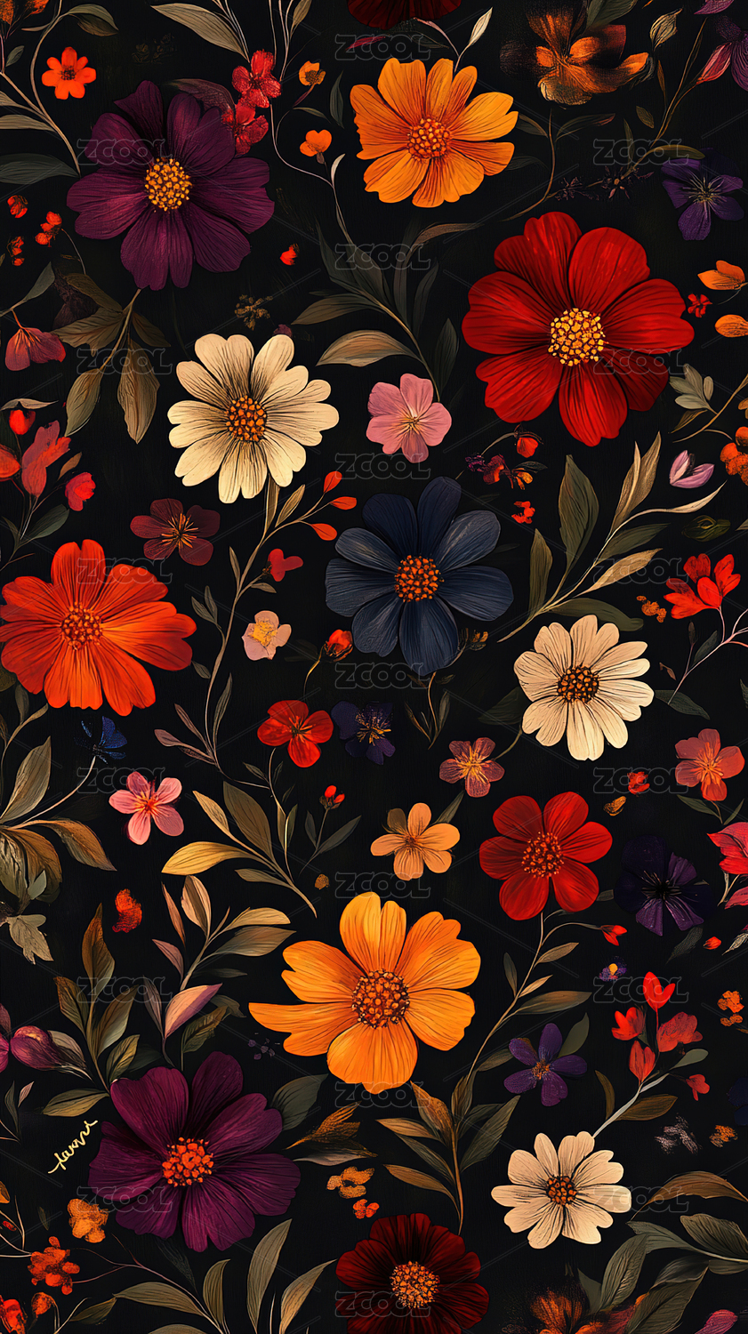 数码复古彩色复杂花卉装饰抽象图形海报背景