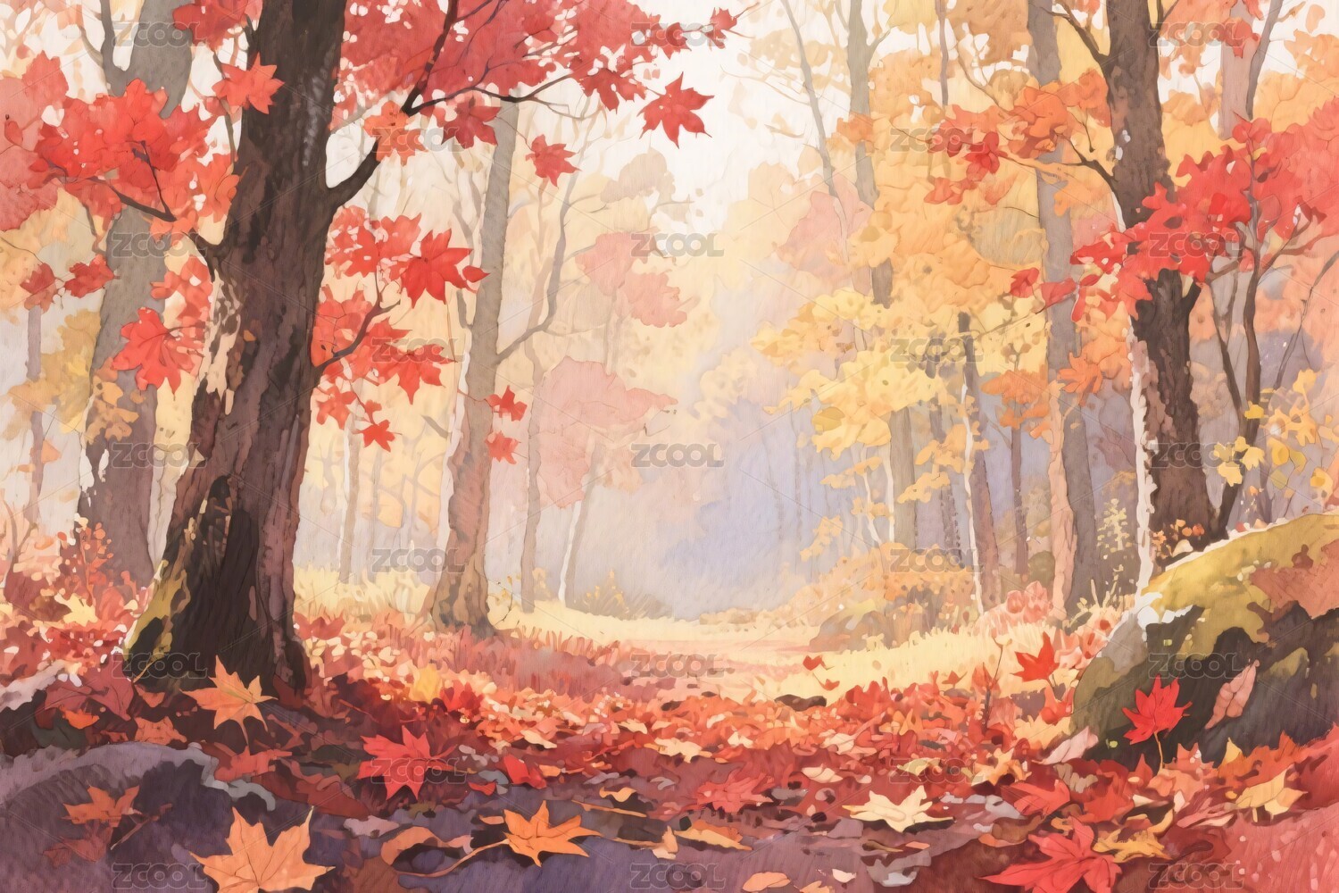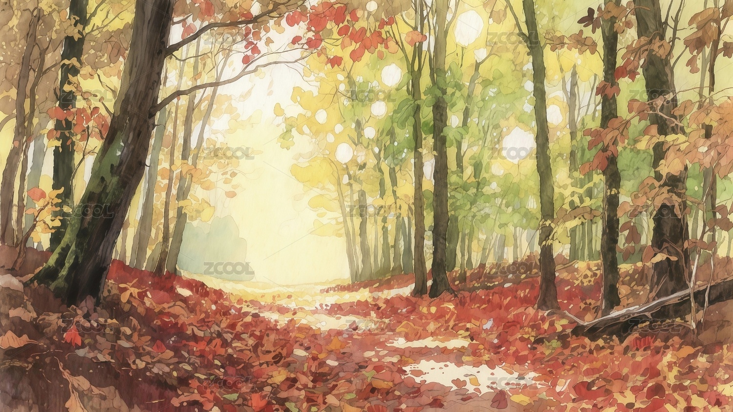 秋季风景插画水彩风格