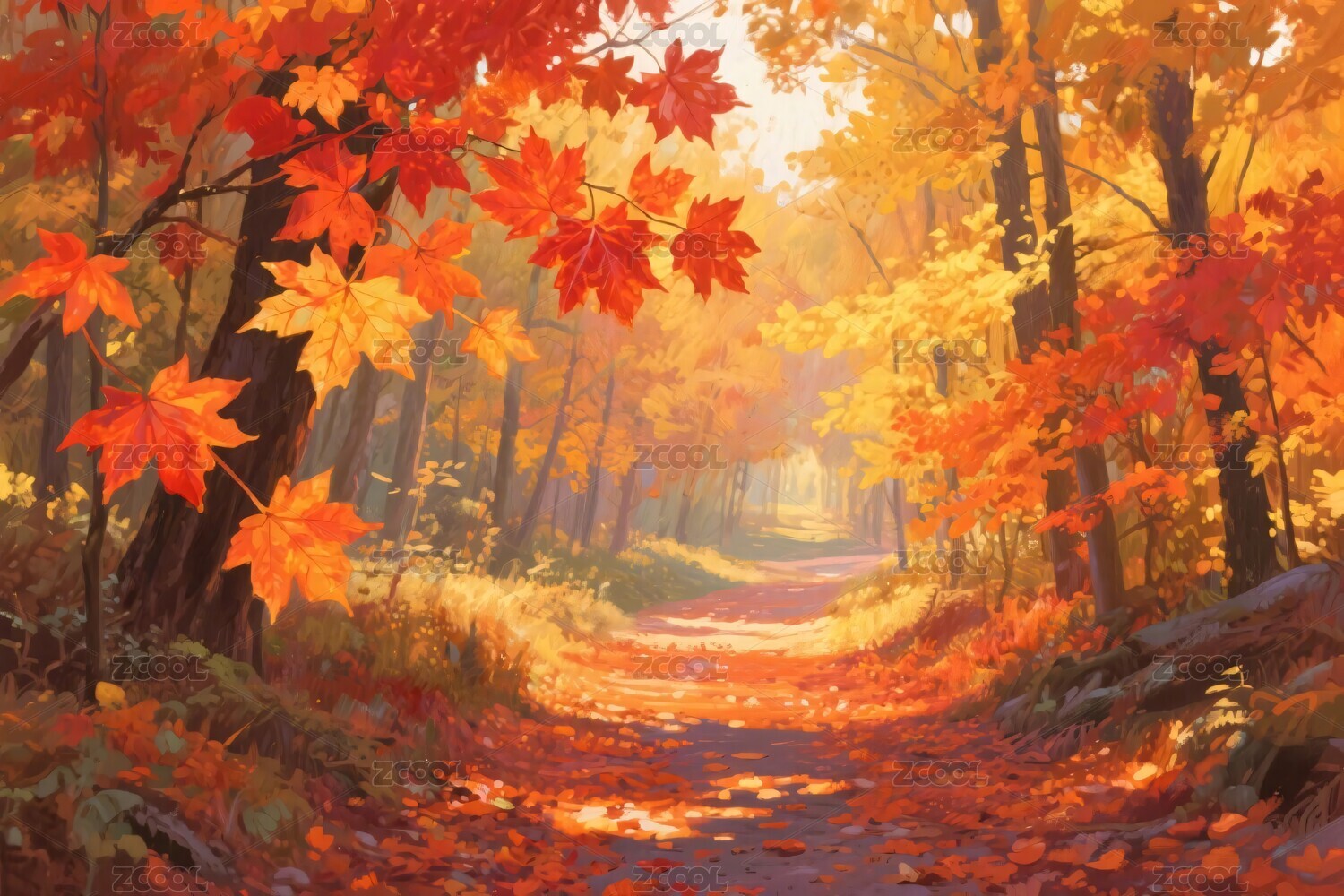 秋日林间小径阳光洒落