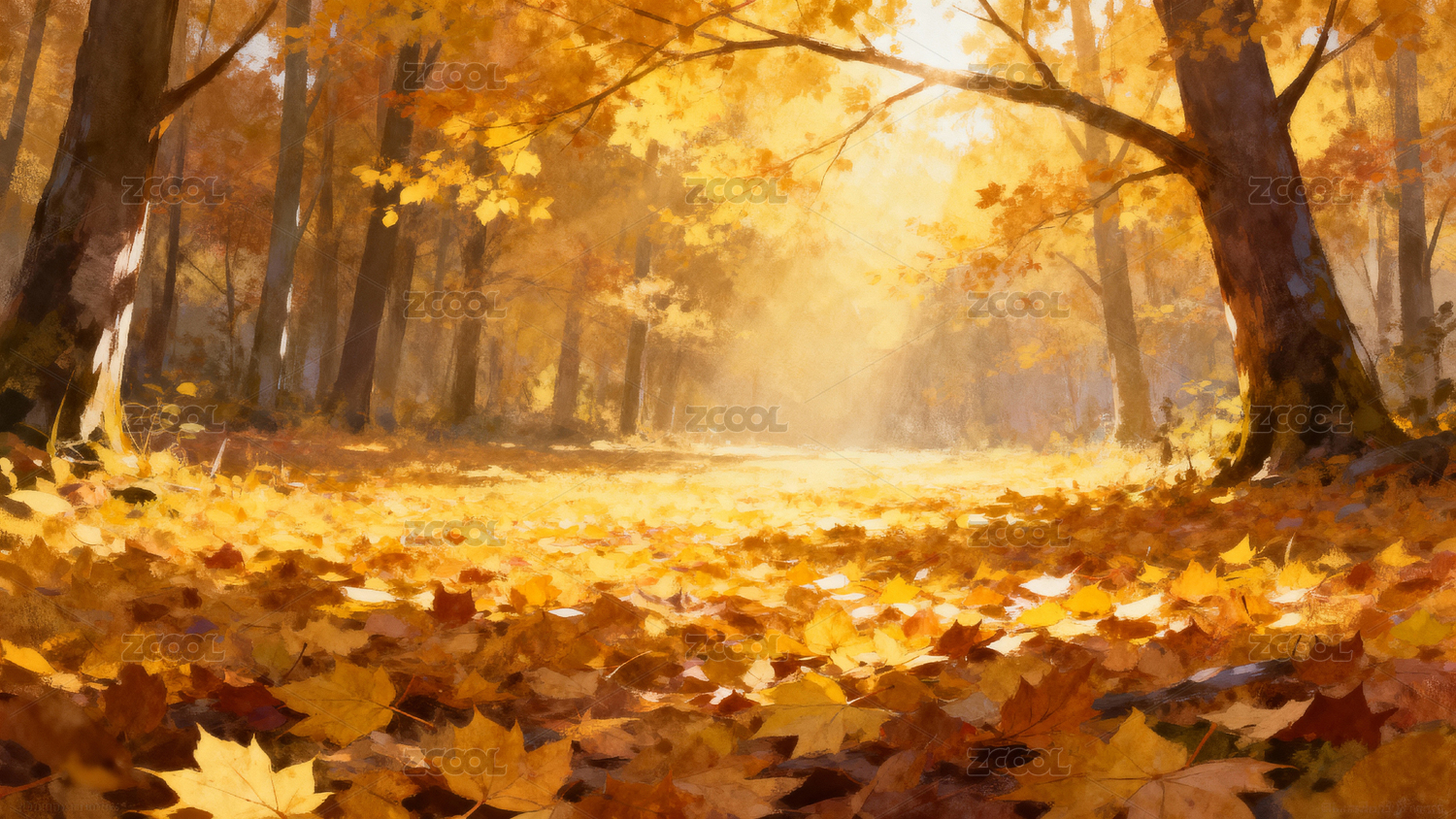 秋天,风景,插画,树,树叶,黄色,氛围,秋季,AIGC202402,水彩